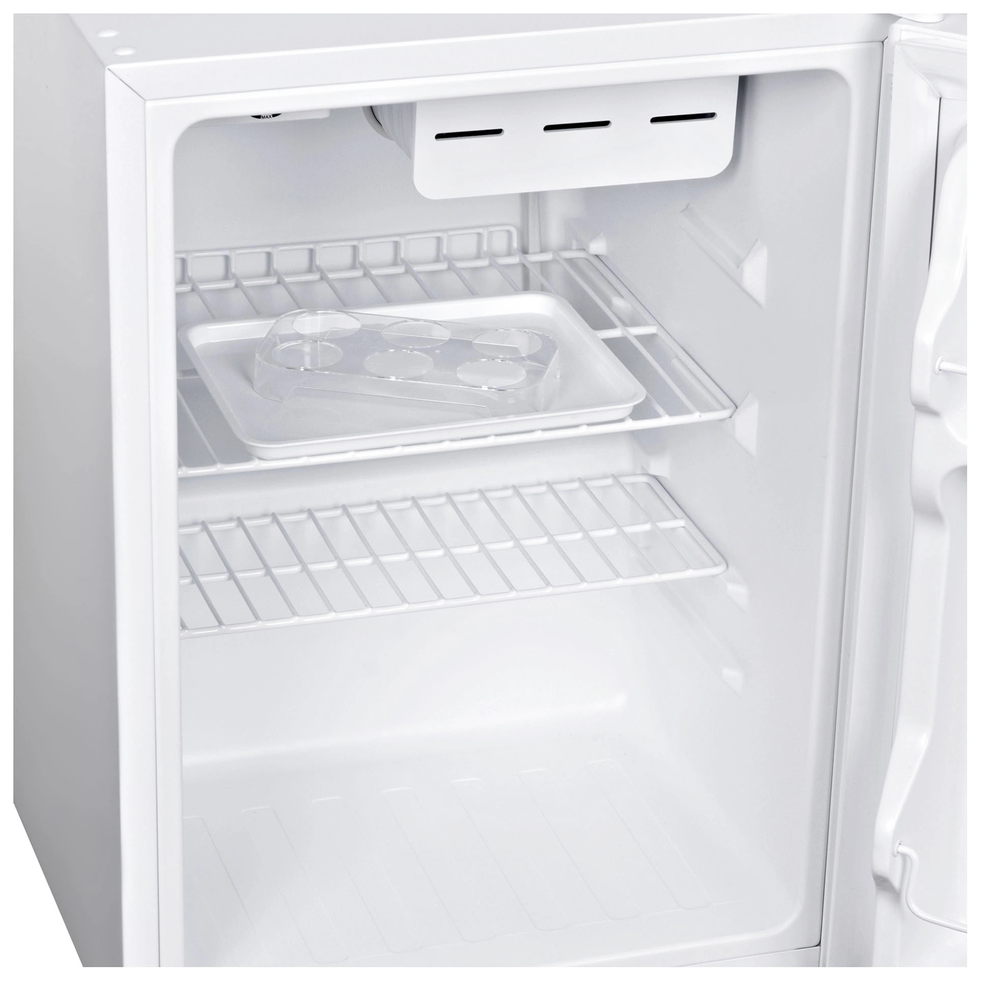 Однокамерный холодильник Sunwind SCO101 белого цвета не имеет морозильного отсека, поэтому отличается компактностью, оптимален для малогабаритных пространств. Функционирует устройство благодаря одному классическому компрессору, нагнетающему хладагент R600a. Полезный внутренний объем достигает 67 л. Распределение продовольствия облегчается за счет наличия двух полок, сделанных в виде металлических решеток, а также пары отделений, расположенных в единственной дверце холодильника. Здесь удобно размещать бутылки и пачки подходящих размеров. Модель соответствует классу энергопотребления A+. Во время работы генерируется шум на уровне 42 дБ. Размораживание выполняется вручную при возникновении необходимости.