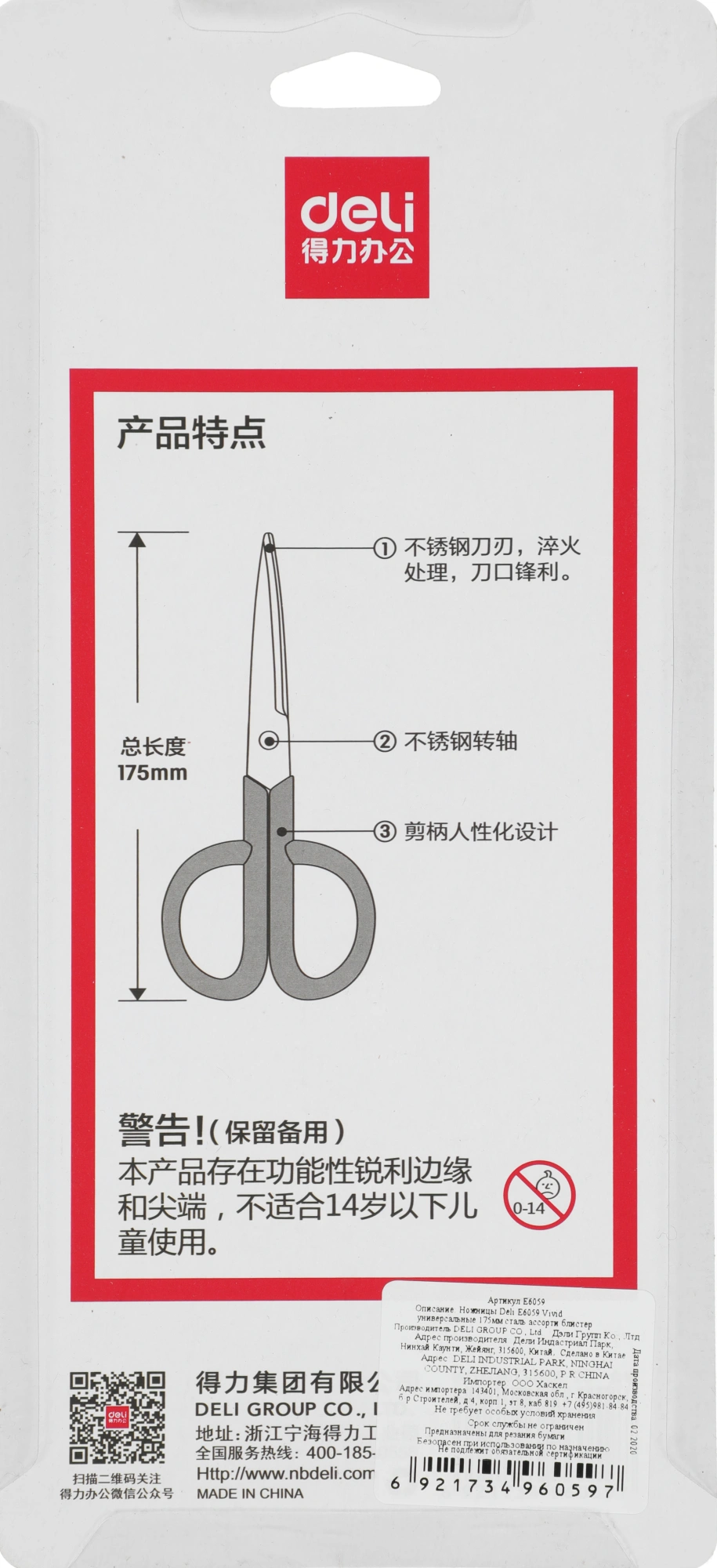 Ножницы Deli E6059 Vivid универсальные 175мм сталь ассорти блистер