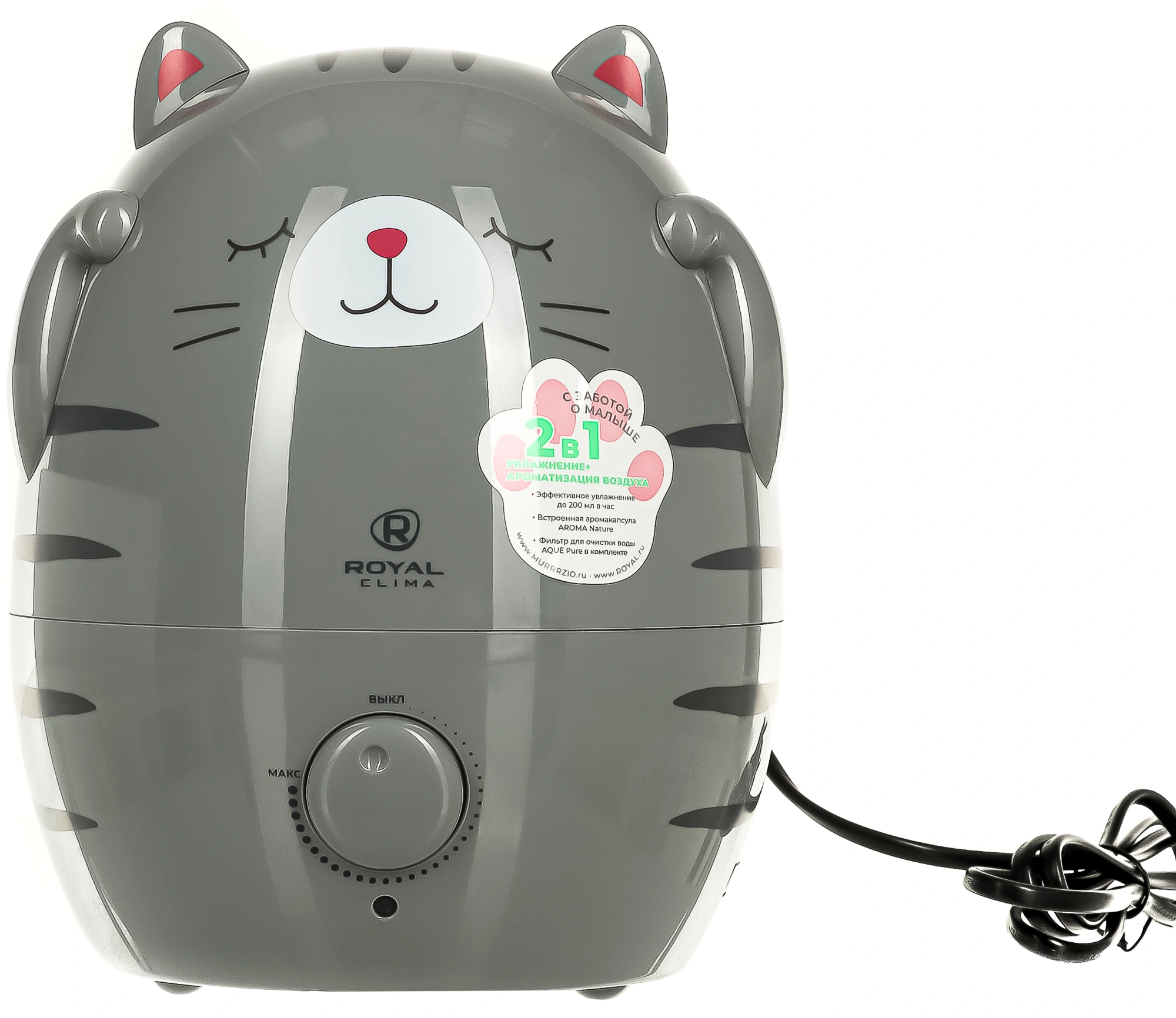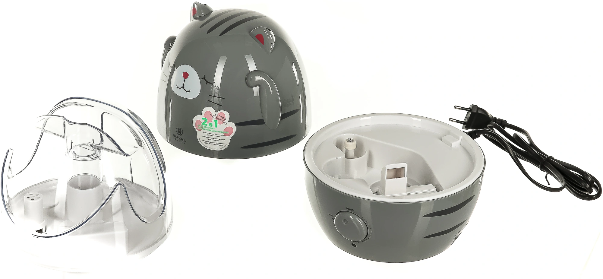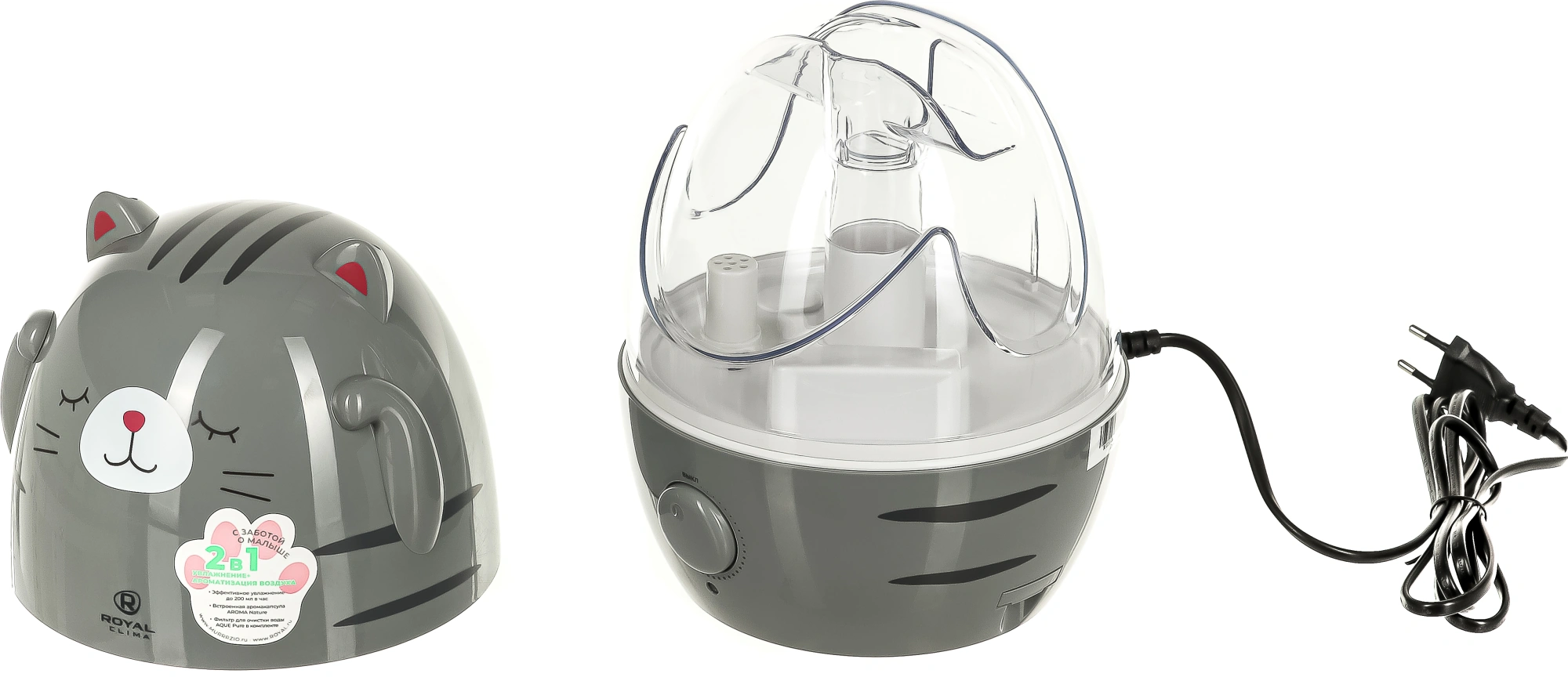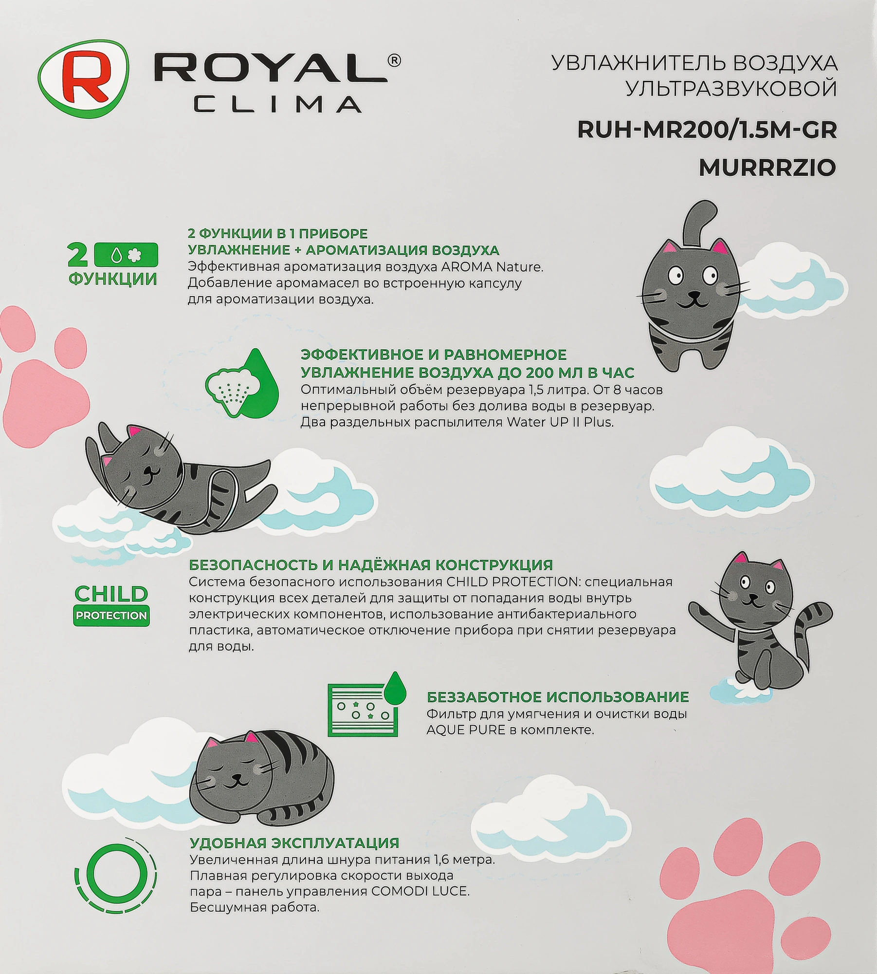 2 в 1: Увлажнитель + Ароматизатор воздуха; Эффективная ароматизация воздуха Aroma Nature – встроенная аромакапсула и три сменных спонжа в комплекте; Два раздельных распылителя Water UP II Plus (выход пара из двух ушек).