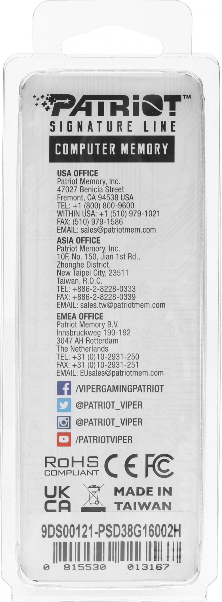 Память DDR3 8GB 1600MHz Patriot PSD38G16002H