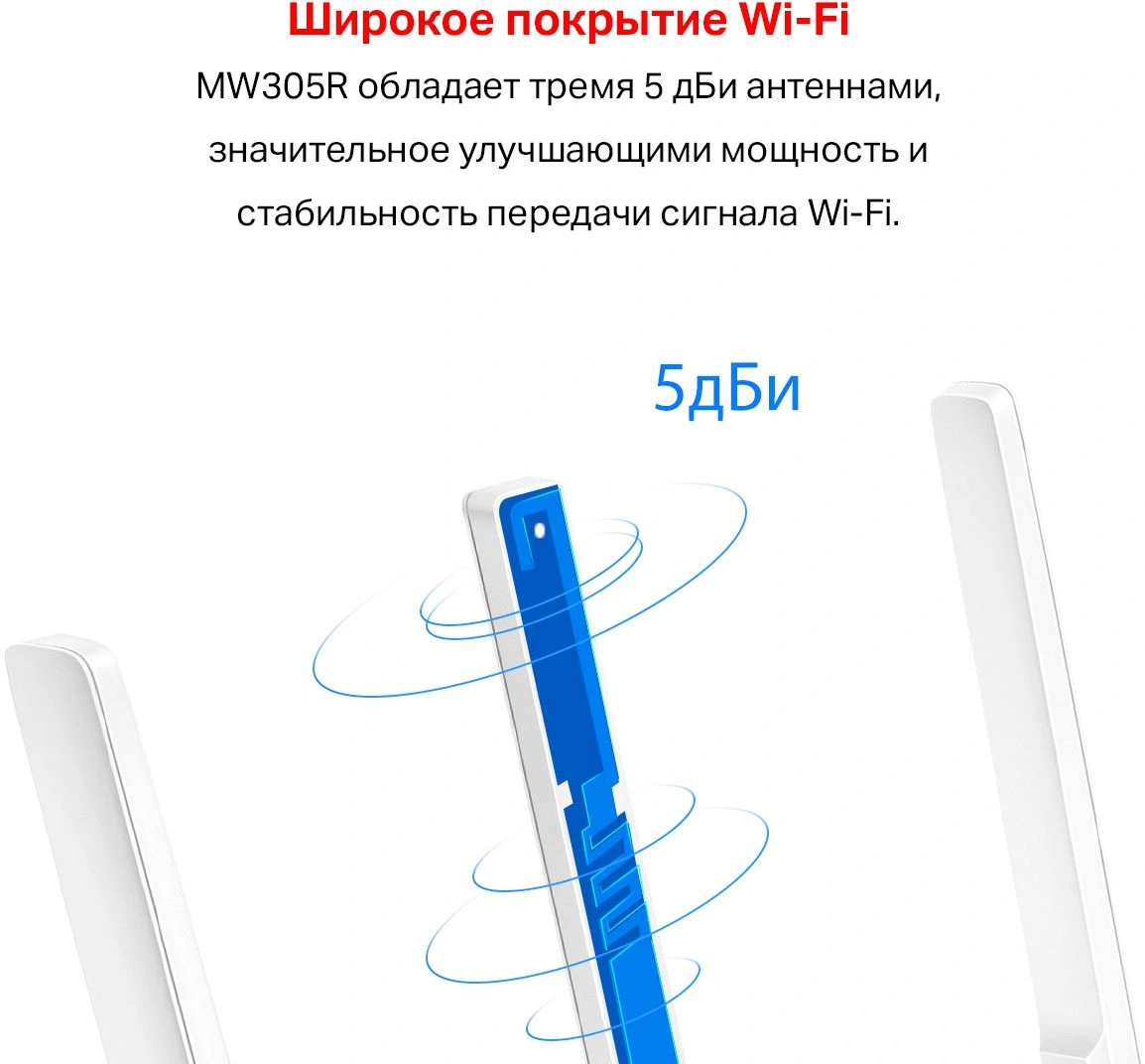 Компактный маршрутизатор.Три 5 дБи антенны значительно улучшают мощность передачи Wi-Fi сигнала, увеличивают площадь покрытия и стабильность