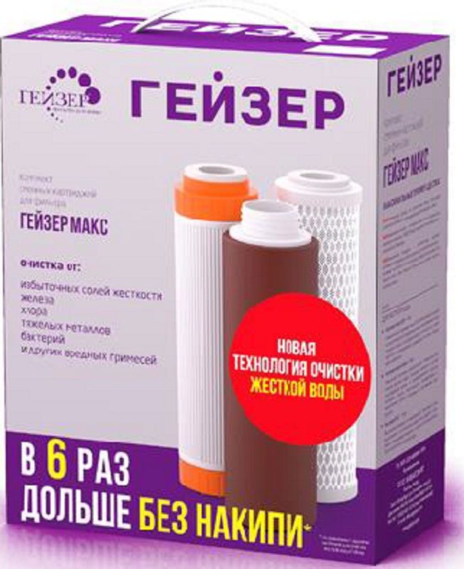 МАКСимальный эффект 12 месяцев работы. МАКСимальный ресурс по умягчению. МАКСимальная экономия. МАКСимальная польза. Предназначен для замены исчерпавших свой ресурс картриджей в стационарных трехступенчатых фильтрах для сверхжесткой воды.
