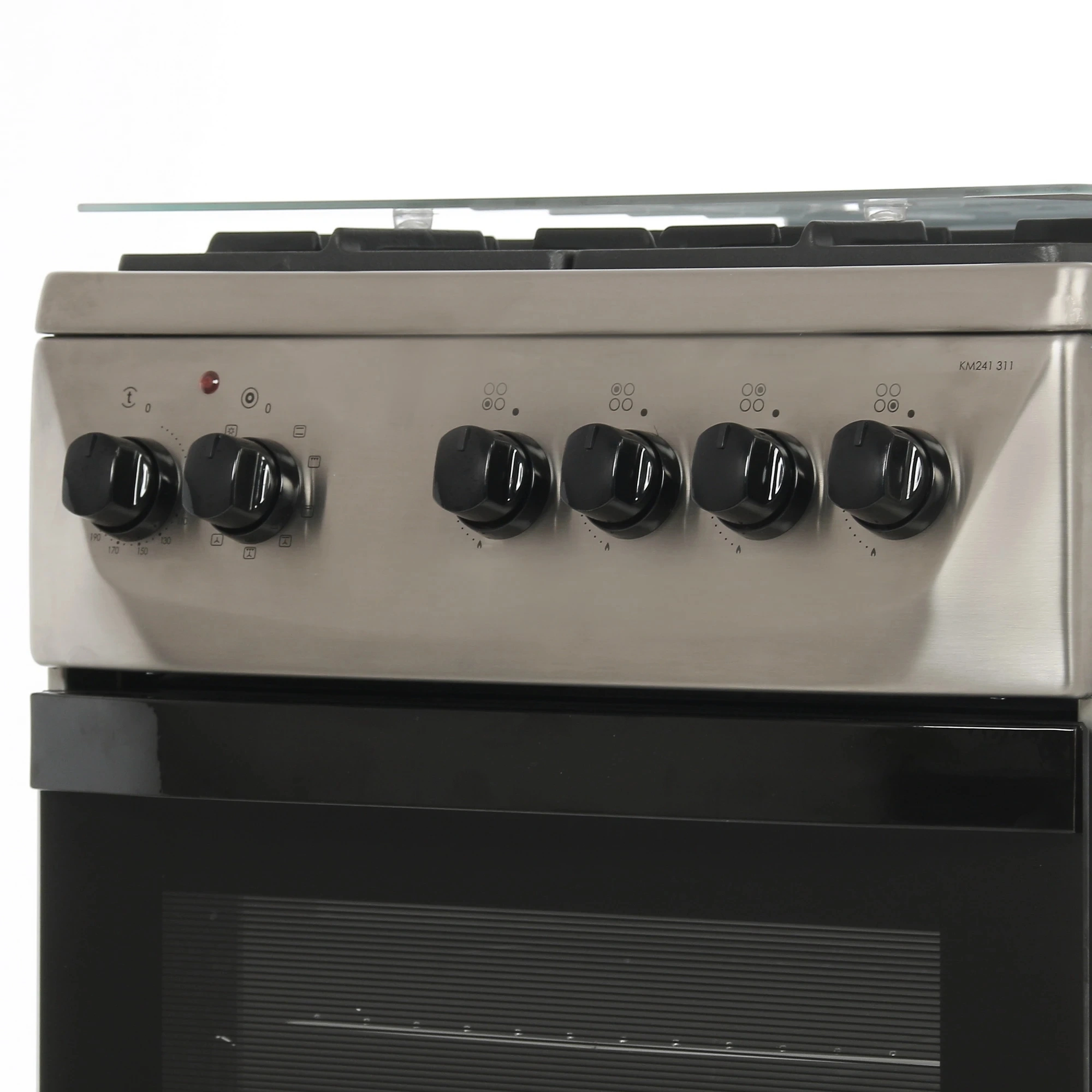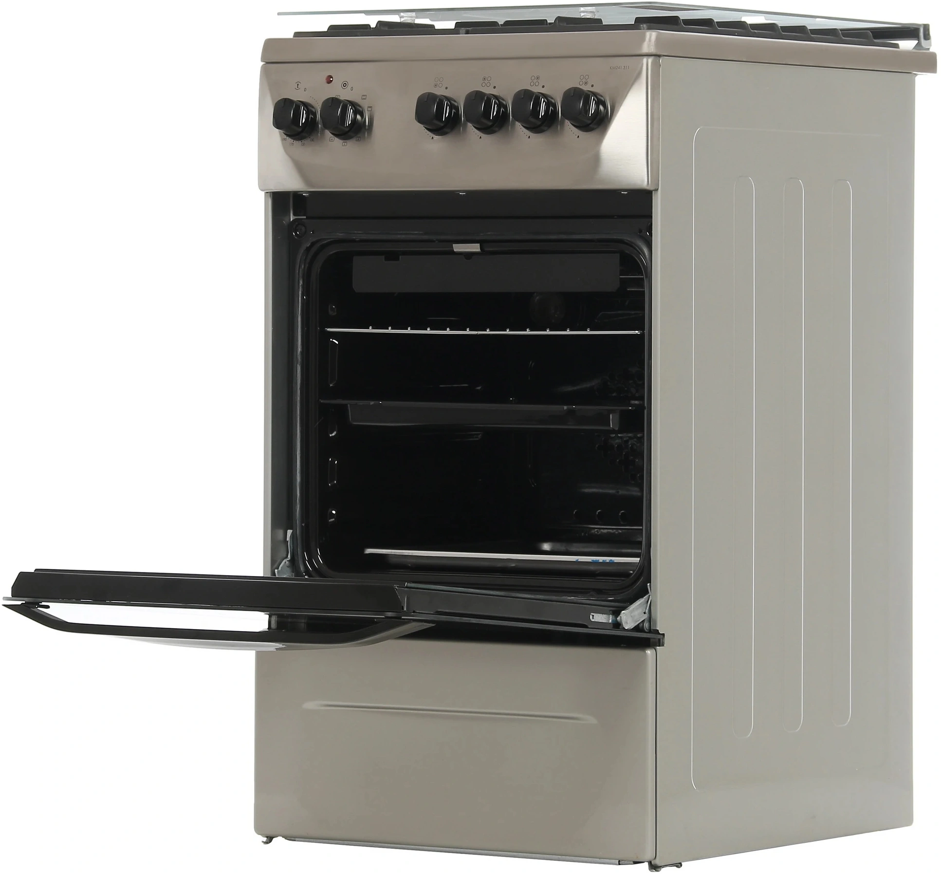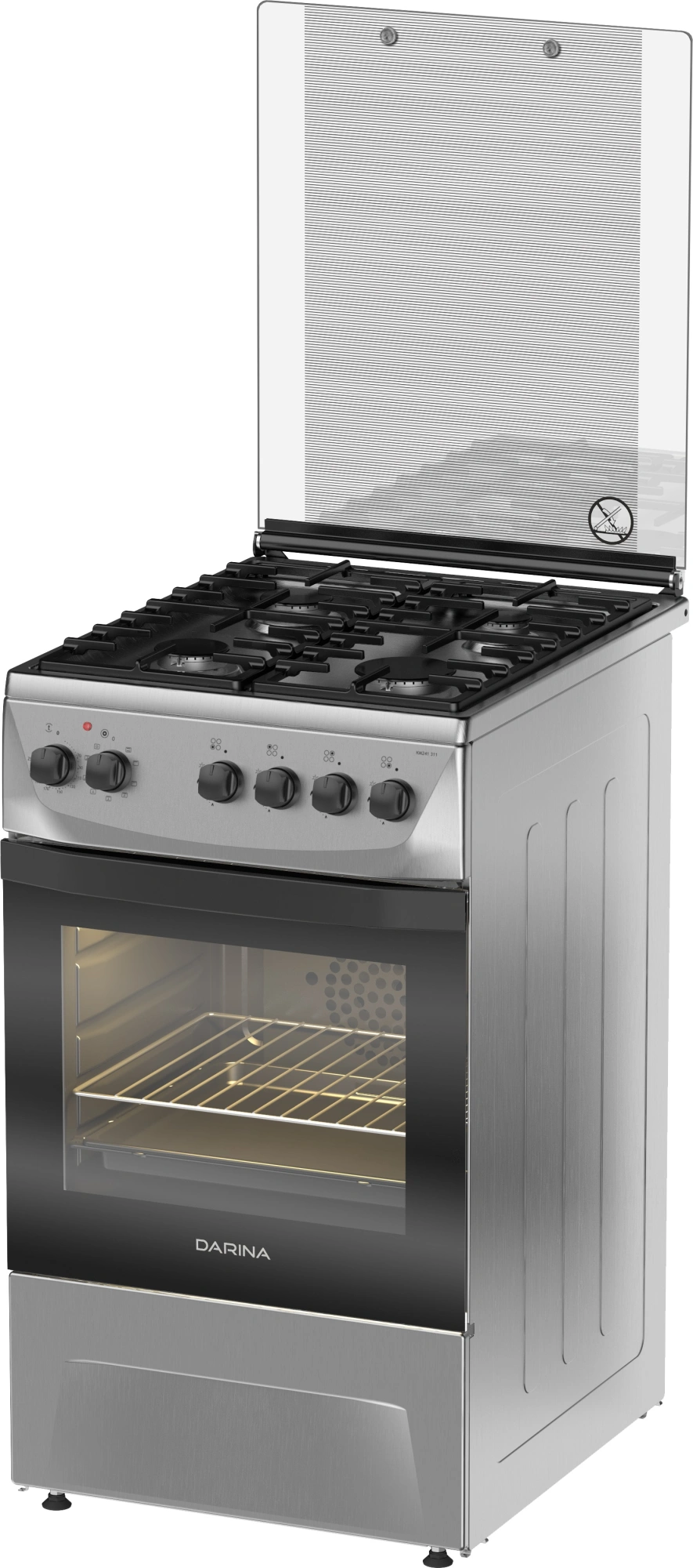 9 режимов работы духовки; Интегрированный электророзжиг горелок стола; Фиксированное положение Малое пламя; Терморегулятор; Подсветка духовки; Гриль; Двойное стекло дверцы духовки; регулируемые опоры