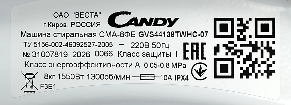 класс: A+++ загр.фронтальная макс.:8кг белый инвер...