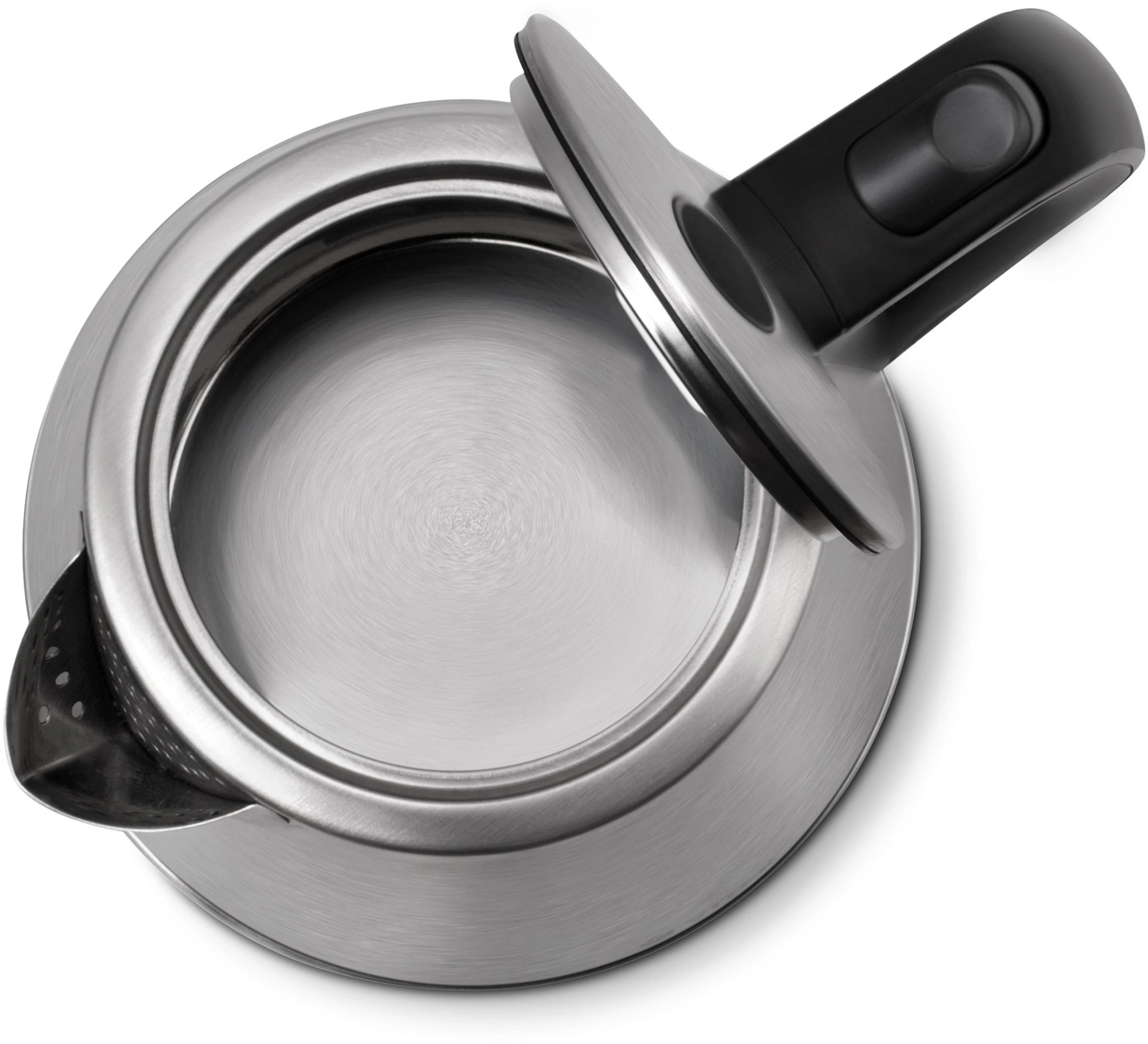 Стильный и лаконичный чайник VT-7040 ST подойдет тем, кто рационально подходит к обустройству собственной кухни. Вот уж действительно – все, что нужно и ничего лишнего: ручка и основание из матового пластика, защита от перегрева, автоматический способ открывания крышки, удобный отсек для шнура и, конечно, эргономичный корпус из высококачественной нержавеющей стали – правильный выбор для тех, кто заботится о качестве воды и любит ультрамодные кухонные аксессуары. Нагревательный элемент чайника скрыт под сплошной металлической пластиной, так что ухаживать за ним крайне легко: достаточно заполнить его раствором лимонной или уксусной кислоты, оставить на ночь, а после просто промыть в проточной воде.