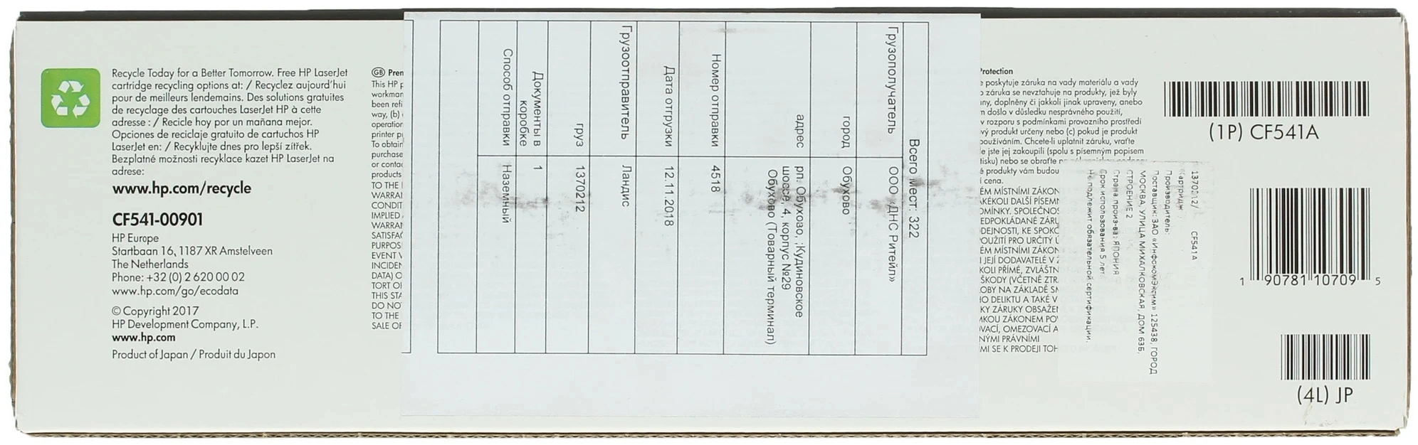 CF541A голубой бар.в компл. (1300стр.) для HP M254...
