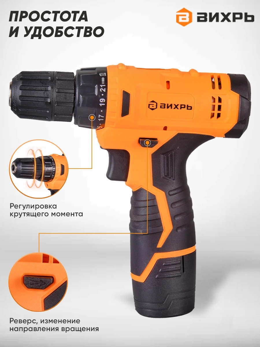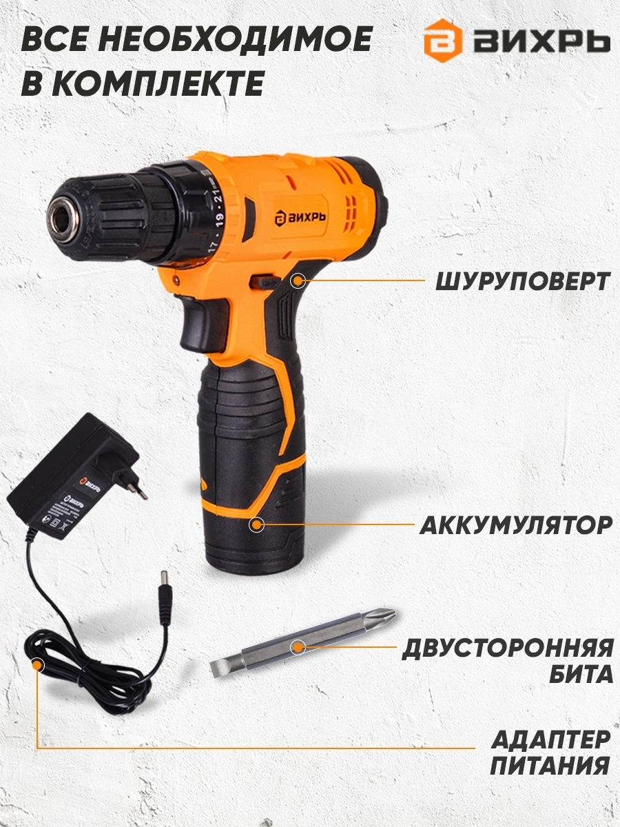 Шуруповерт, аккумуляторная батарея, адаптер питания