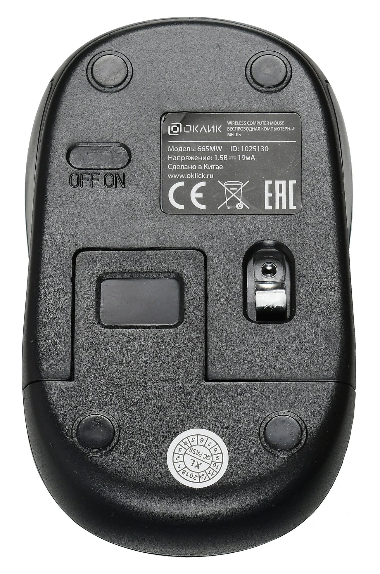На Оклик 665MW расположены 3 кнопки, в том числе кнопка выключения мыши, которая выручает при переноске или сохранении заряда устройства.
