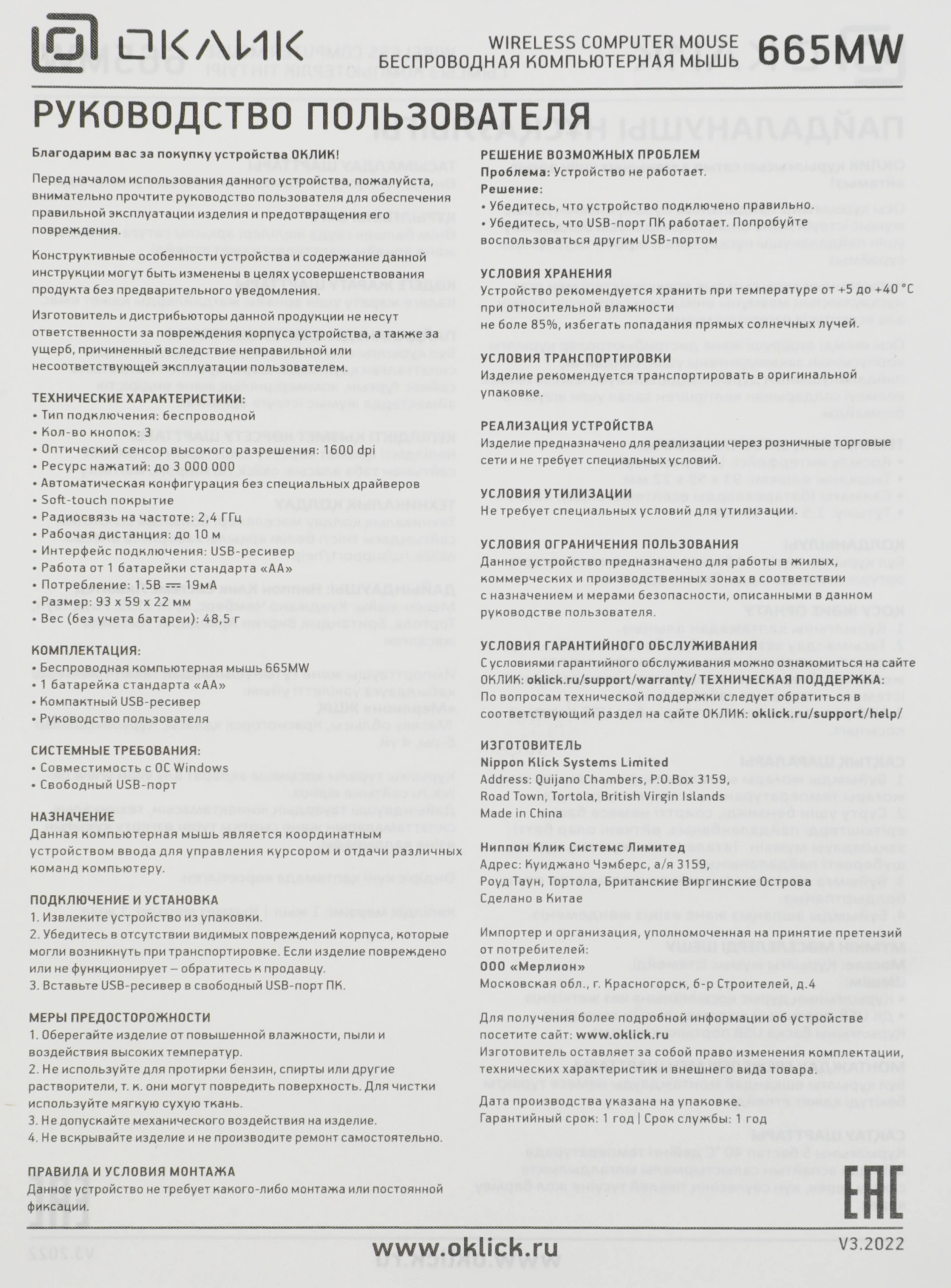 Беспроводная мышь Оклик 665MW – устройство, которое отвечает всем запросам современного пользователя.
