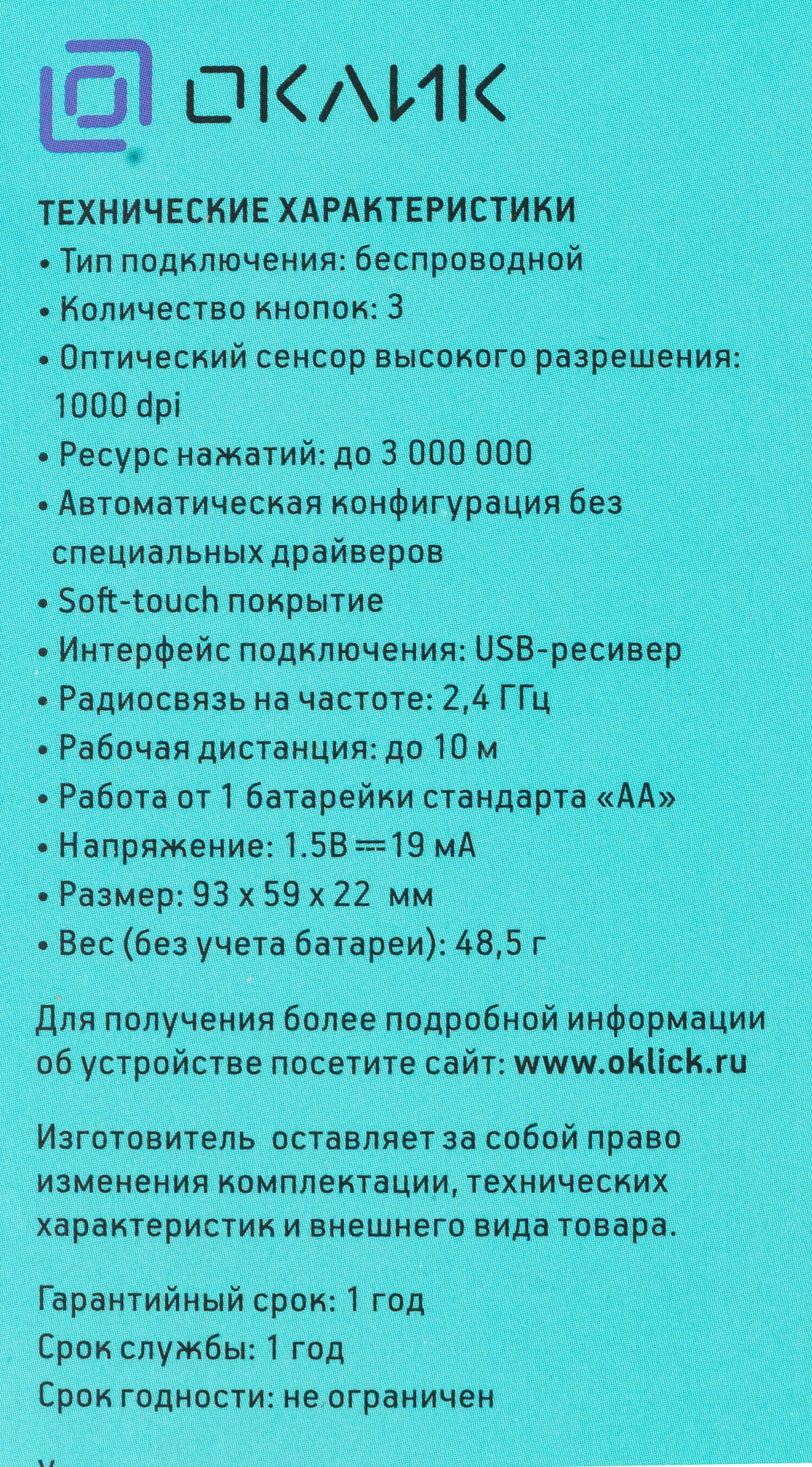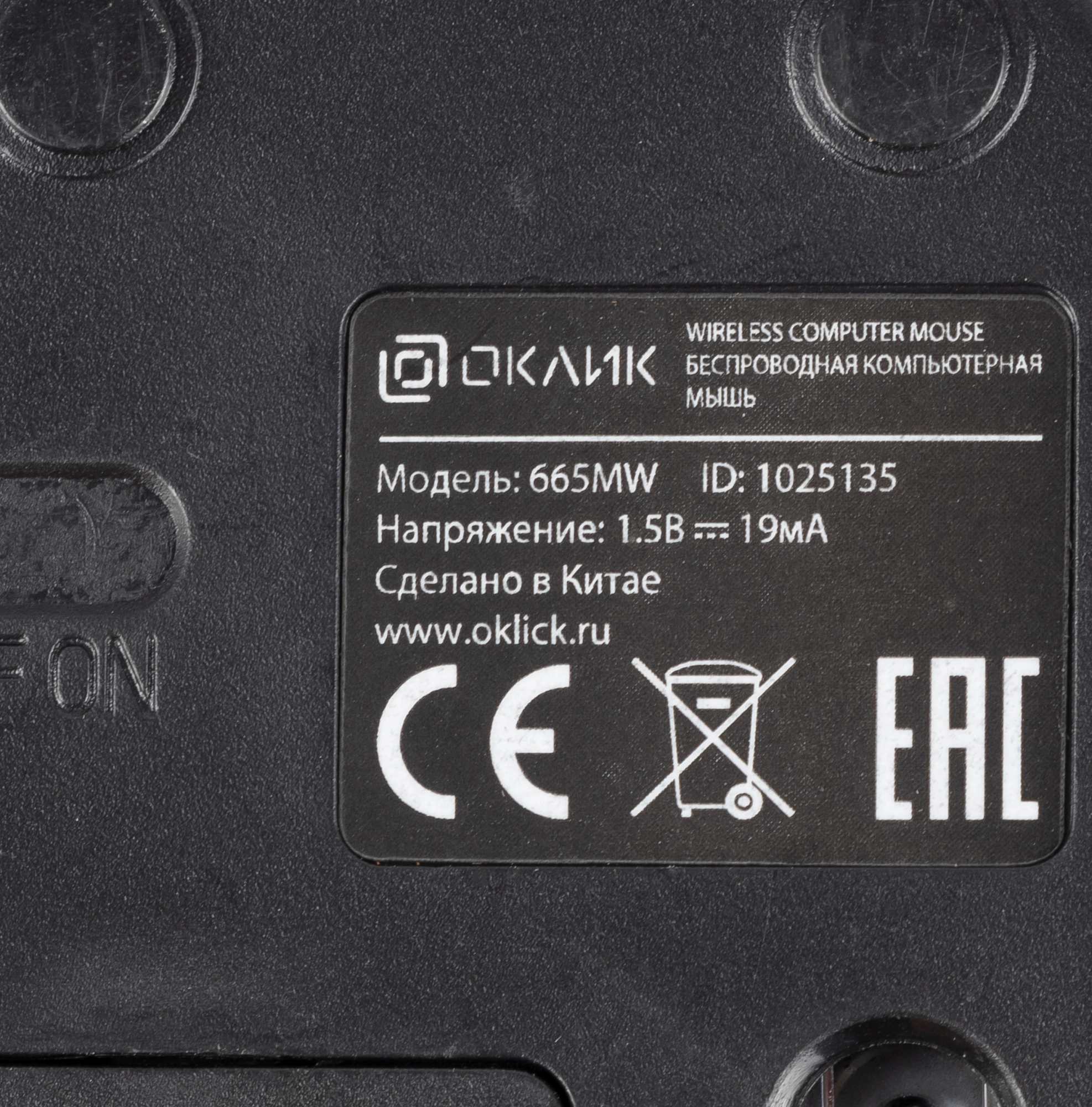 На Oklick 665MW расположены 3 кнопки, в том числе кнопка выключения мыши, которая выручает при переноске или сохранении заряда устройства.