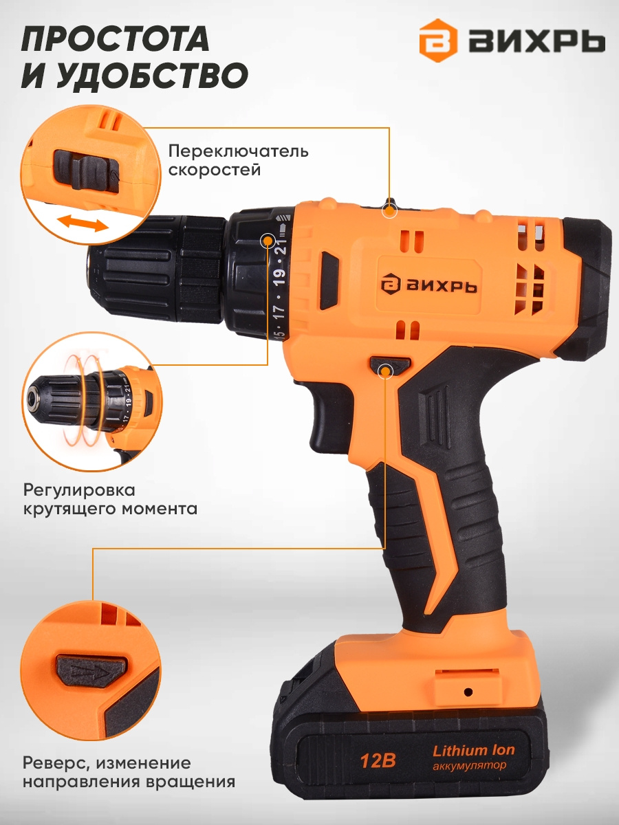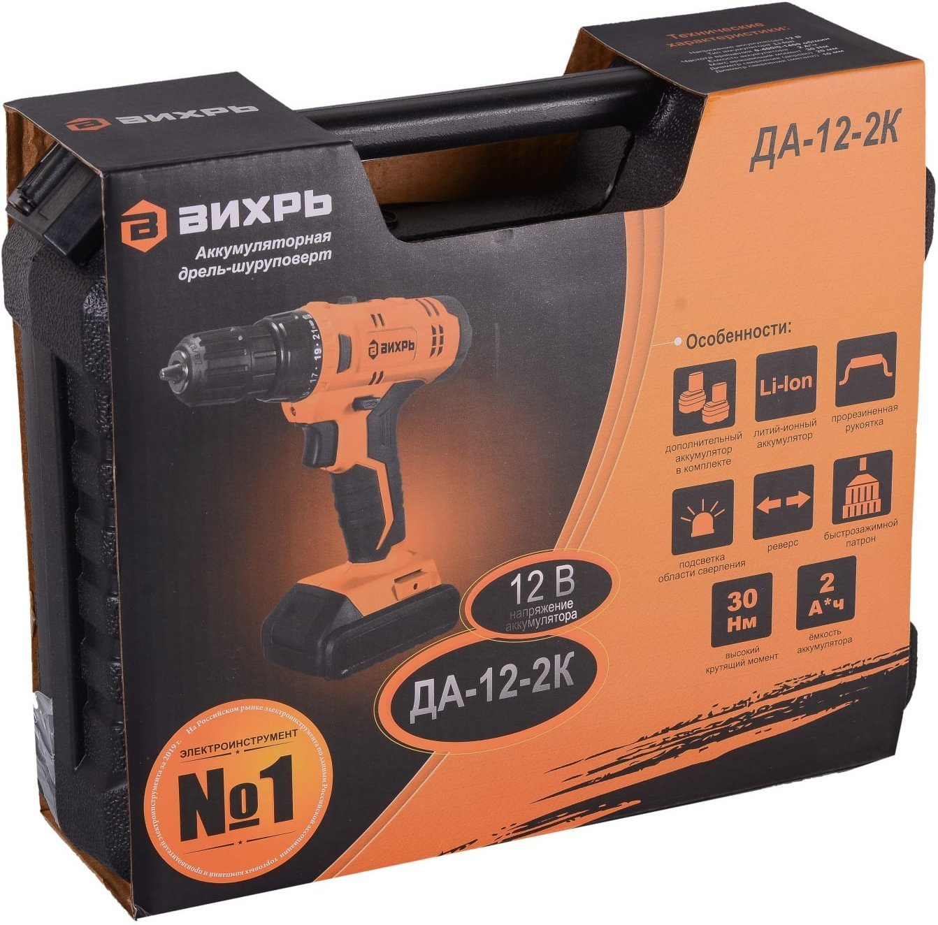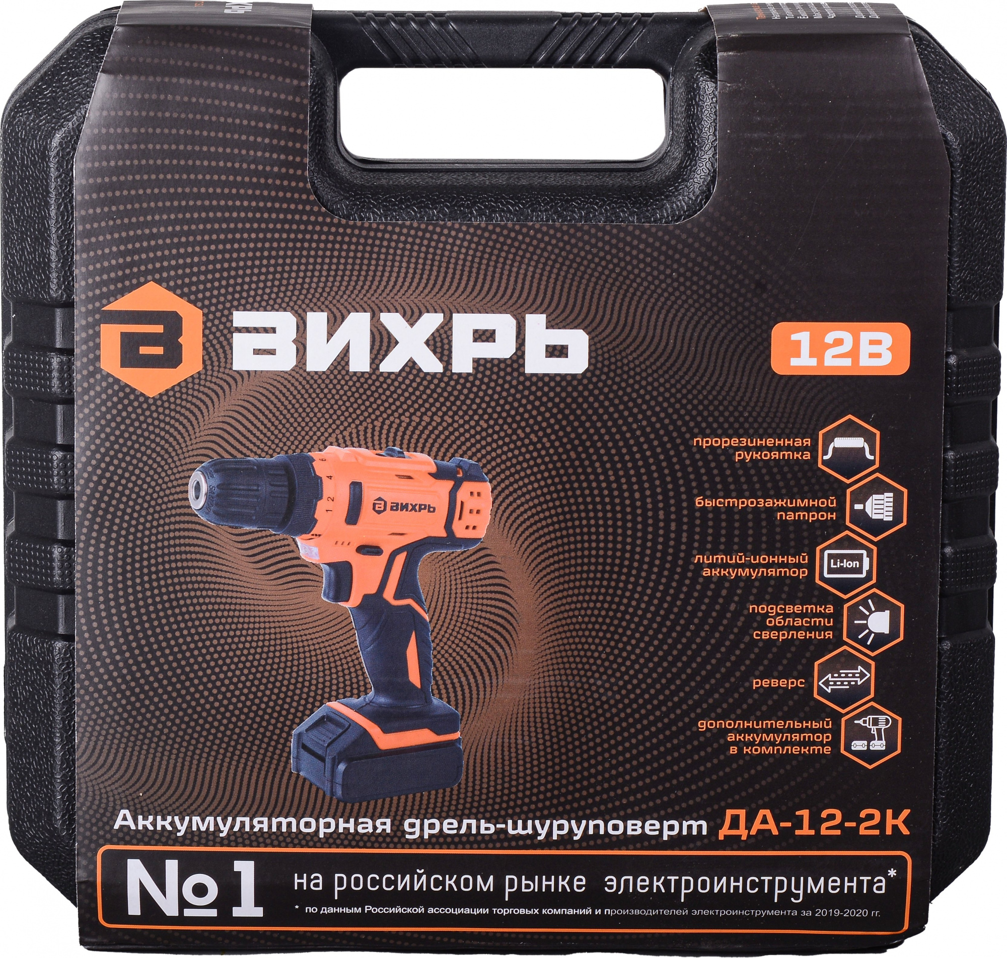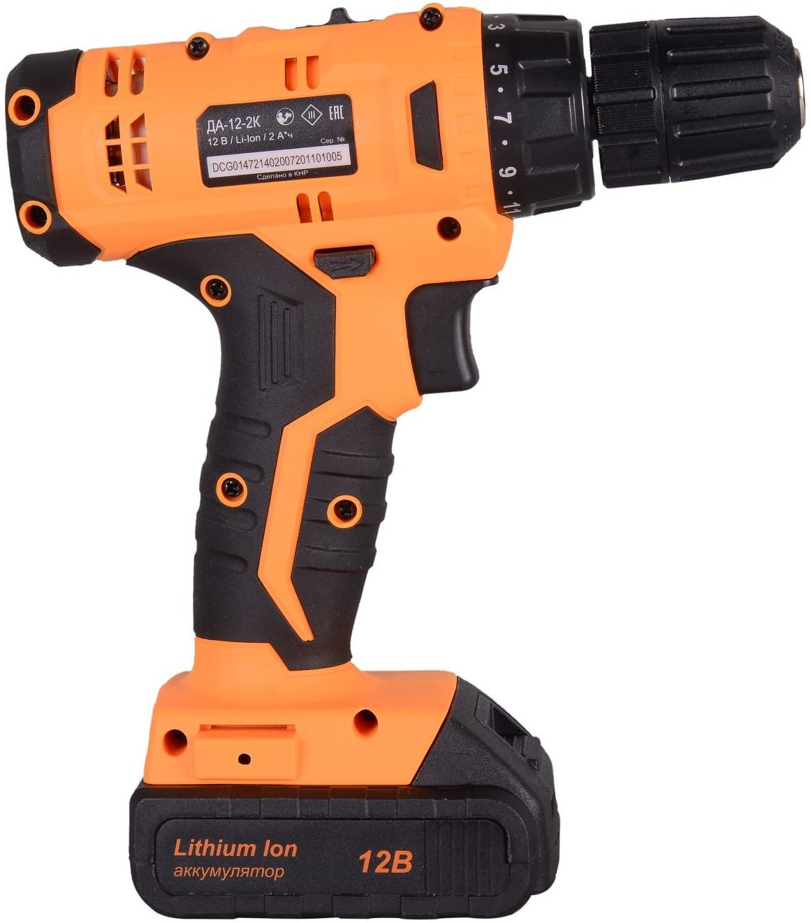 Дрель-шуруповерт, 2 аккумуляторные батареи, зарядное устройство, бита – 6 шт., удлинитель для бит, кейс
