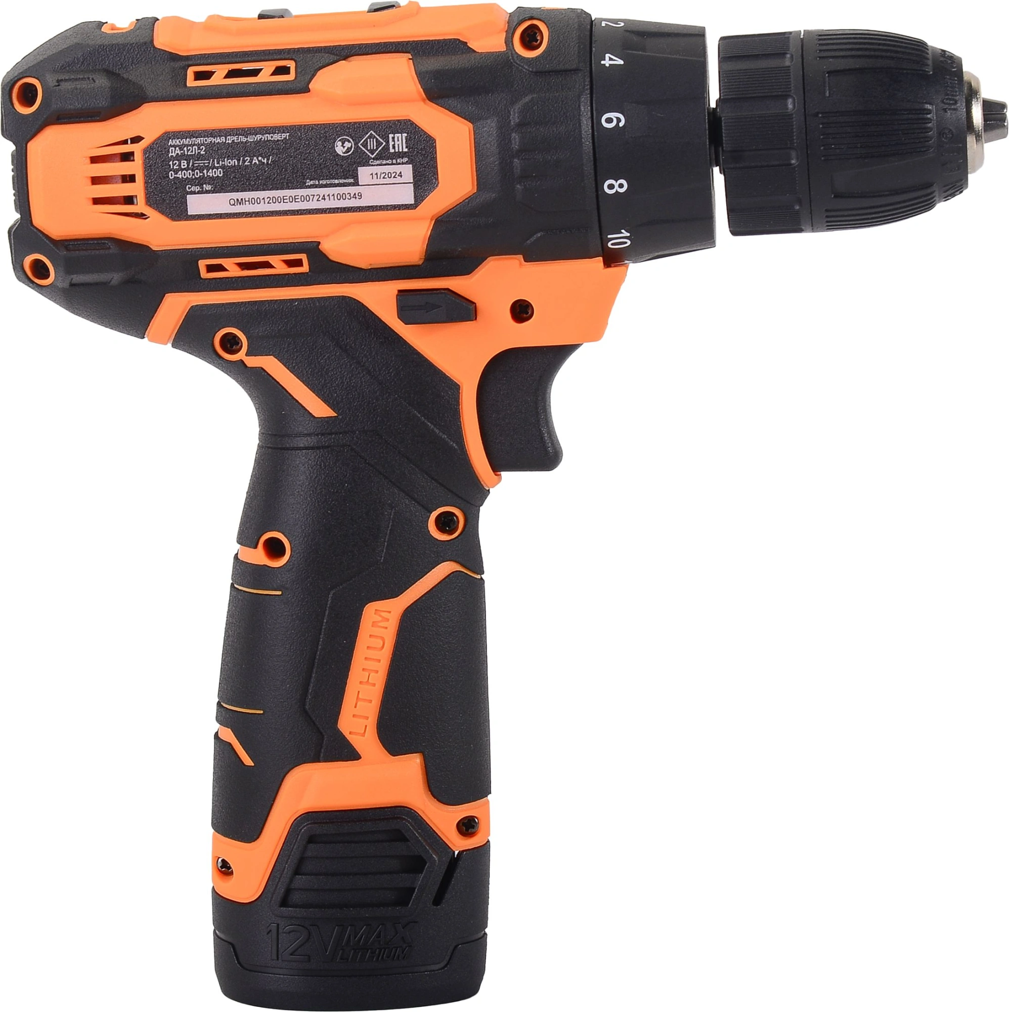 Дрель-шуруповерт, аккумуляторная батарея, зарядное устройство, бита - 6 шт., удлинитель для бит,