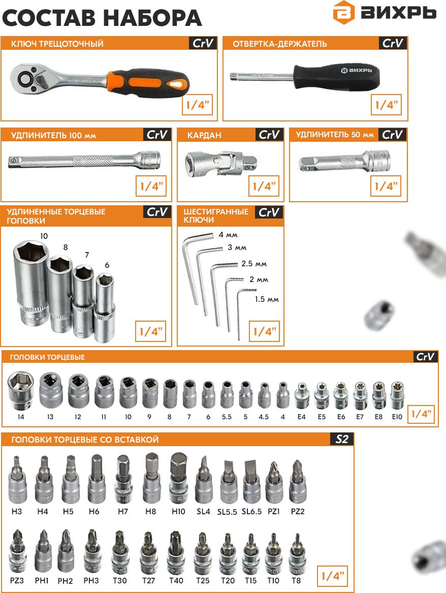 Головки торцевые со вставкой Т8, T10, Т15, Т20, Т25, Т27, Т30, Т40 H3, H4, H5, H6, H7, H8, H10 SL4, SL5.5, SL6,5 PH1, PH2, PH3 PZ1, PZ2, PZ3.