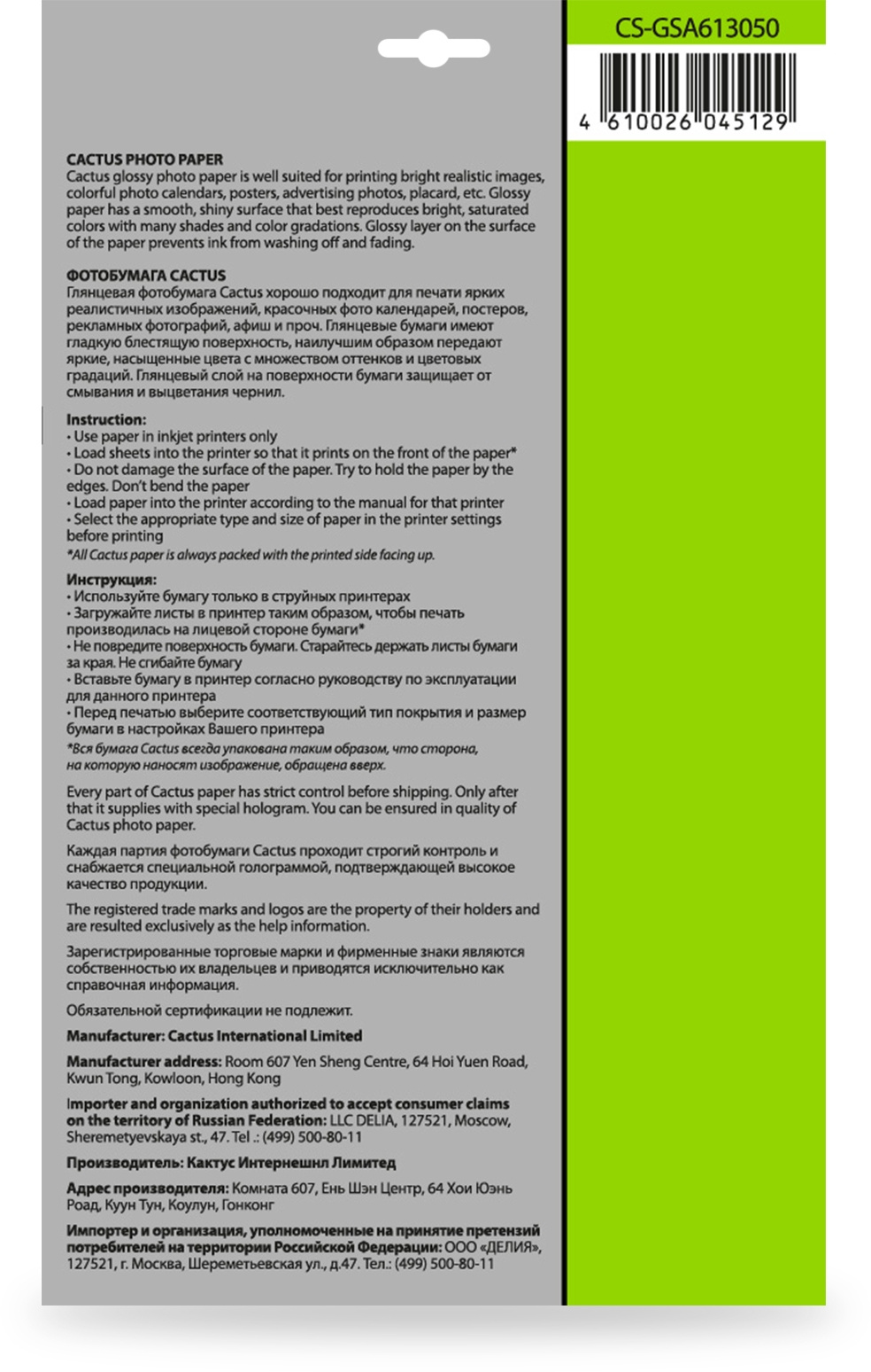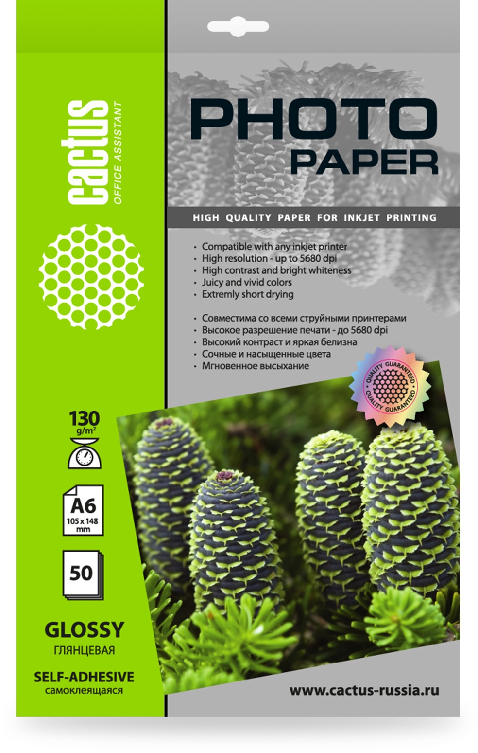 Глянцевая самоклеящаяся фотобумага Cactus серии Standard для струйной печати. Идеально подойдет для печати рекламных и информационных объявлений, элементов интерьерного декора, детского творчества, наклеек, этикеток и пр. Для нанесения на поверхности не требуется дополнительного клея или скотча, так как самоклеящаяся фотобумага имеет мощную клеевую основу обеспечивающую отличное сцепление с поверхностью.