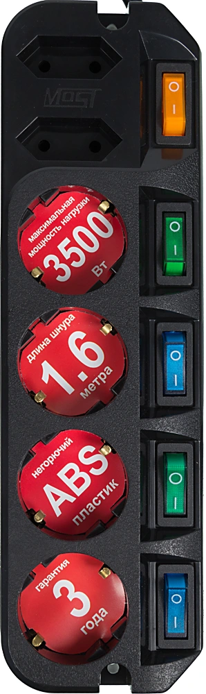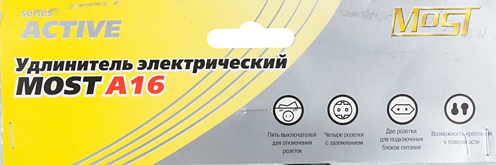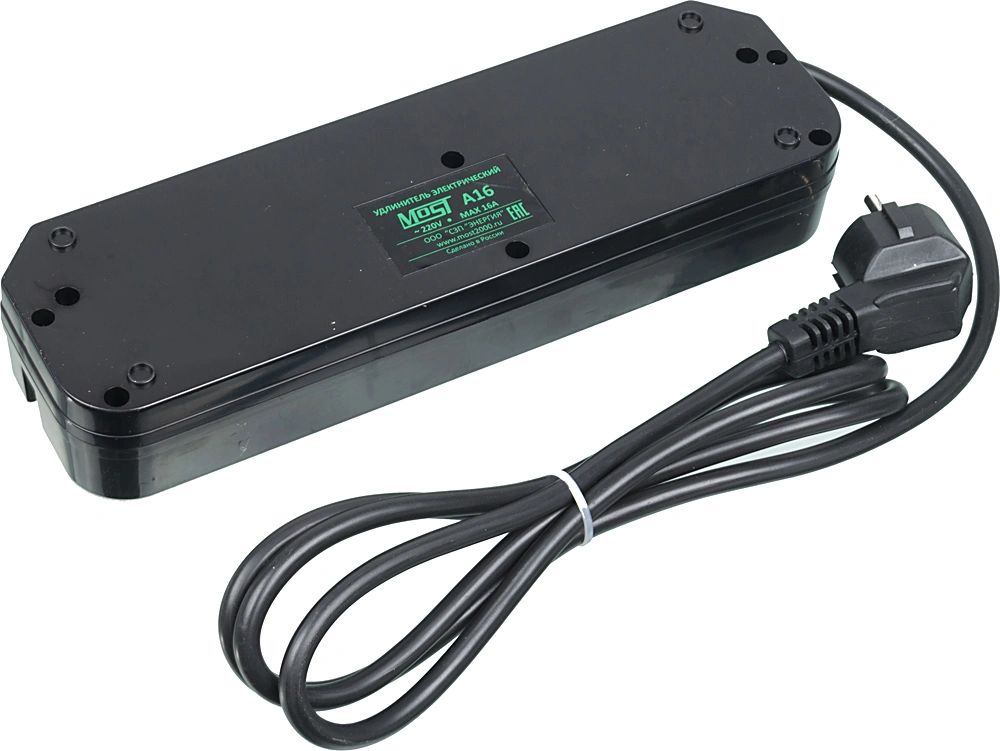 Удлинитель Most А16 предназначен для подключения бытовой техники к сети электропитания. У каждой из четырех евророзеток имеется мощный (16A) индивидуальный выключатель,который обеспечивает удобство обращения с электропитанием и экономит Ваше время. Две узкие розетки имеют общий выключатель.