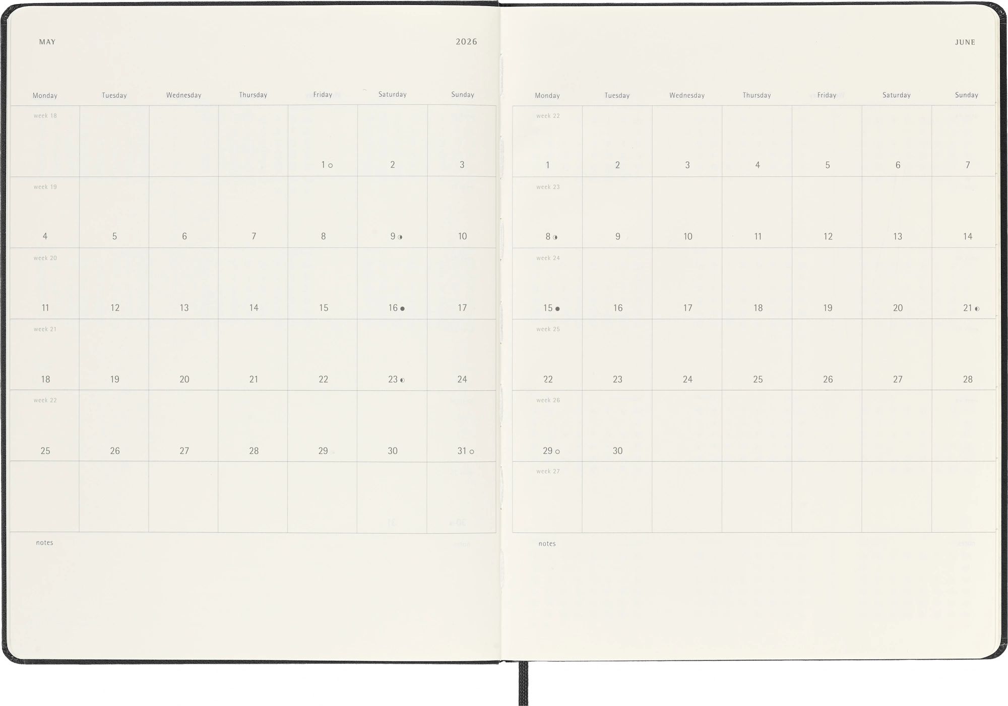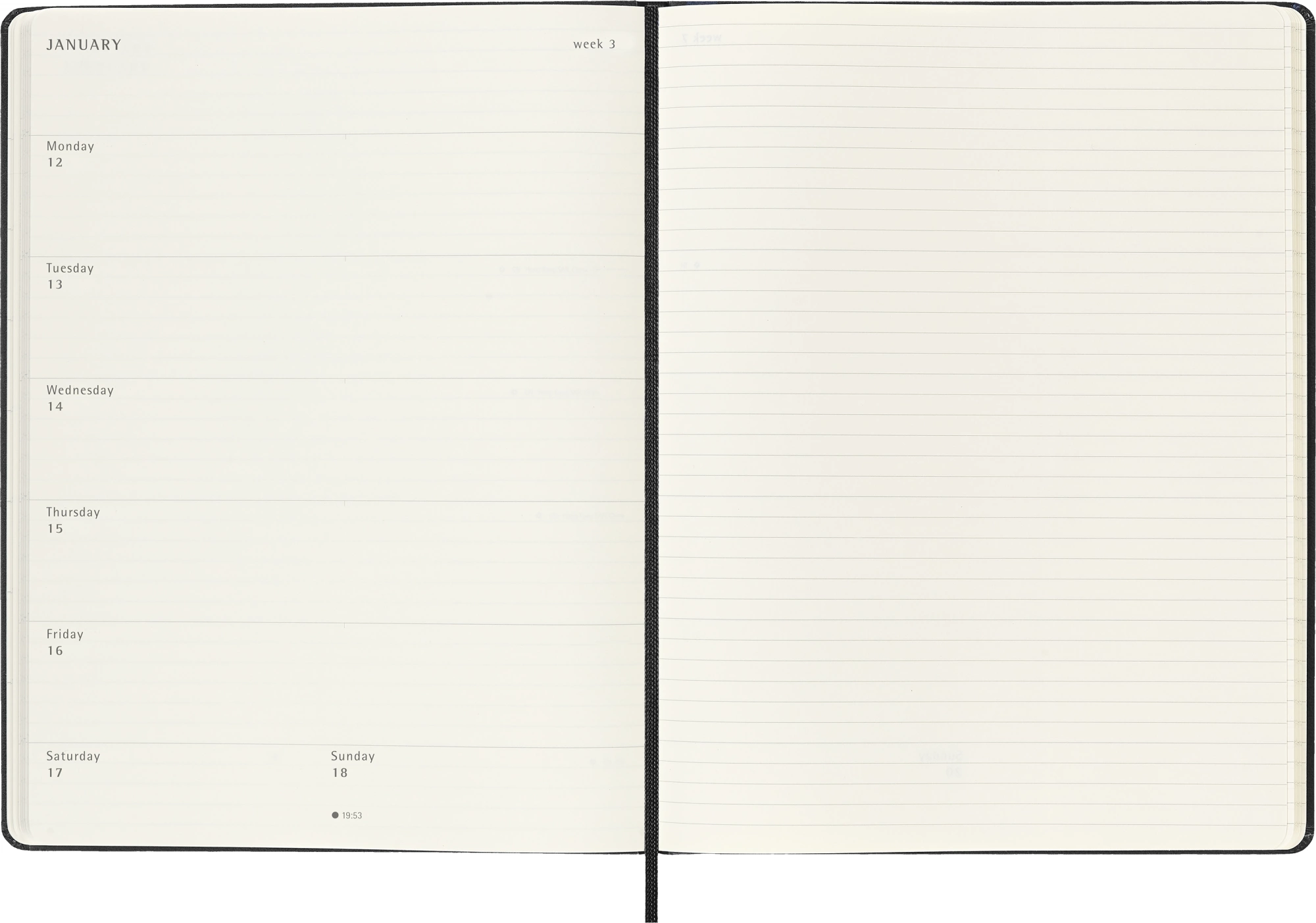 Записная книжка-еженедельник Moleskine датирована с января по декабрь.