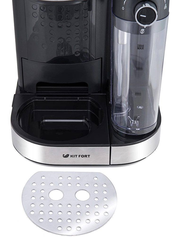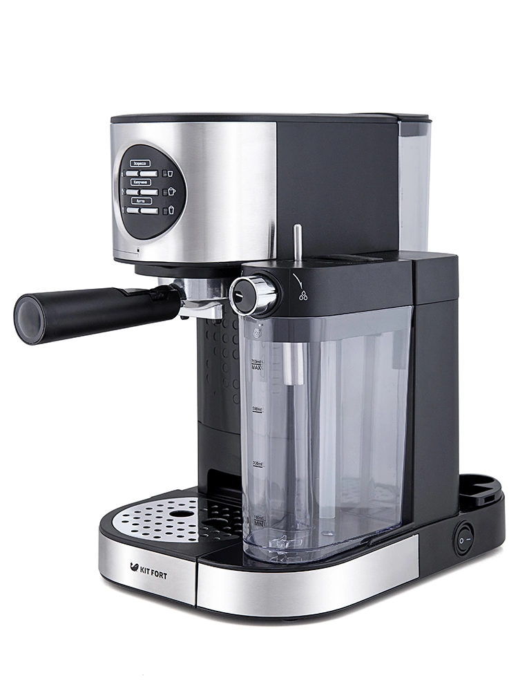 Помповая рожковая автоматическая эспрессо-кофеварка Kitfort КТ-703 поможет приготовить кофе эспрессо, капучино или латте. Тип и объем напитка выбирается нажатием кнопки, а молочная пенка приготовляется во встроенном автоматическом капучинаторе.