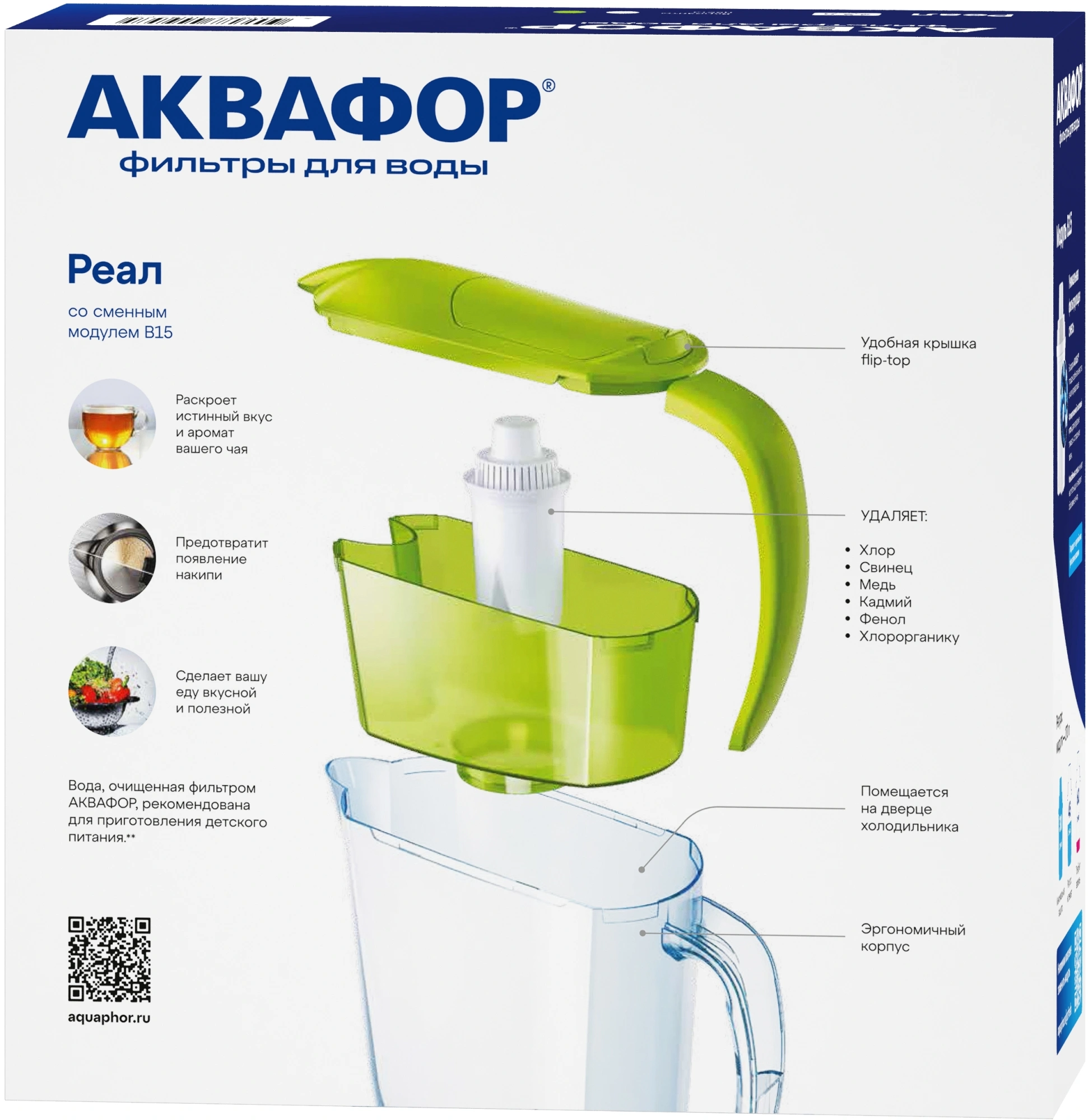 Аквафор Реал – фильтр-кувшин нового поколения. Благодаря компактным размерам, идеально подойдет для малогабаритной кухни. Фильтрующий модуль эффективно и необратимо удаляет органические соединения, железо, тяжелые металлы.