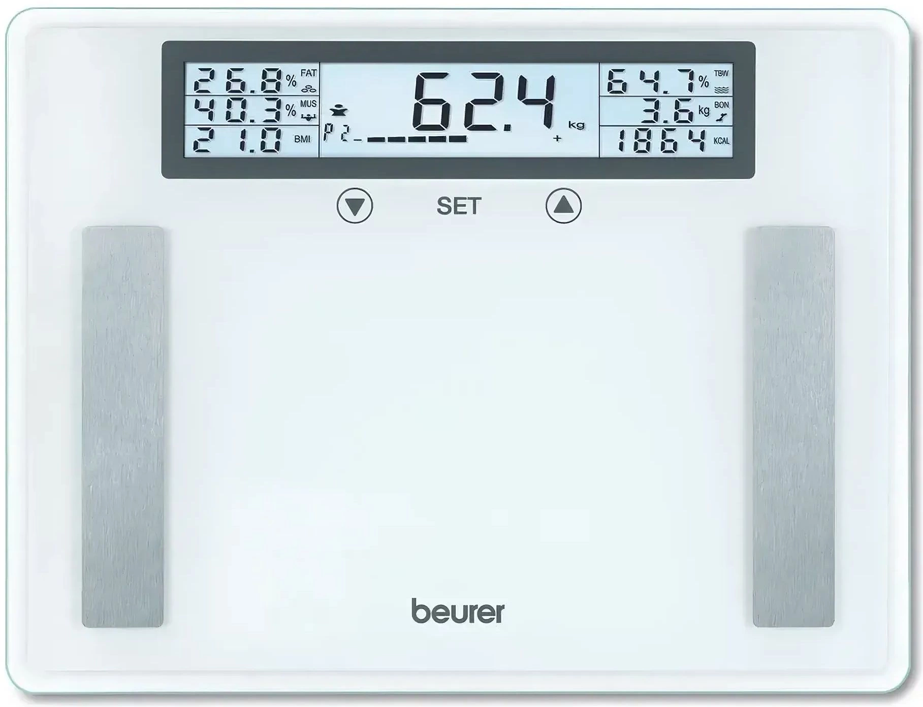 Весы формата XXL c огромной платформой из сверхпрочного безопасного стекла толщиной 8 мм. Электроды из полированной нержавеющей стали. Технология быстрого запуска.