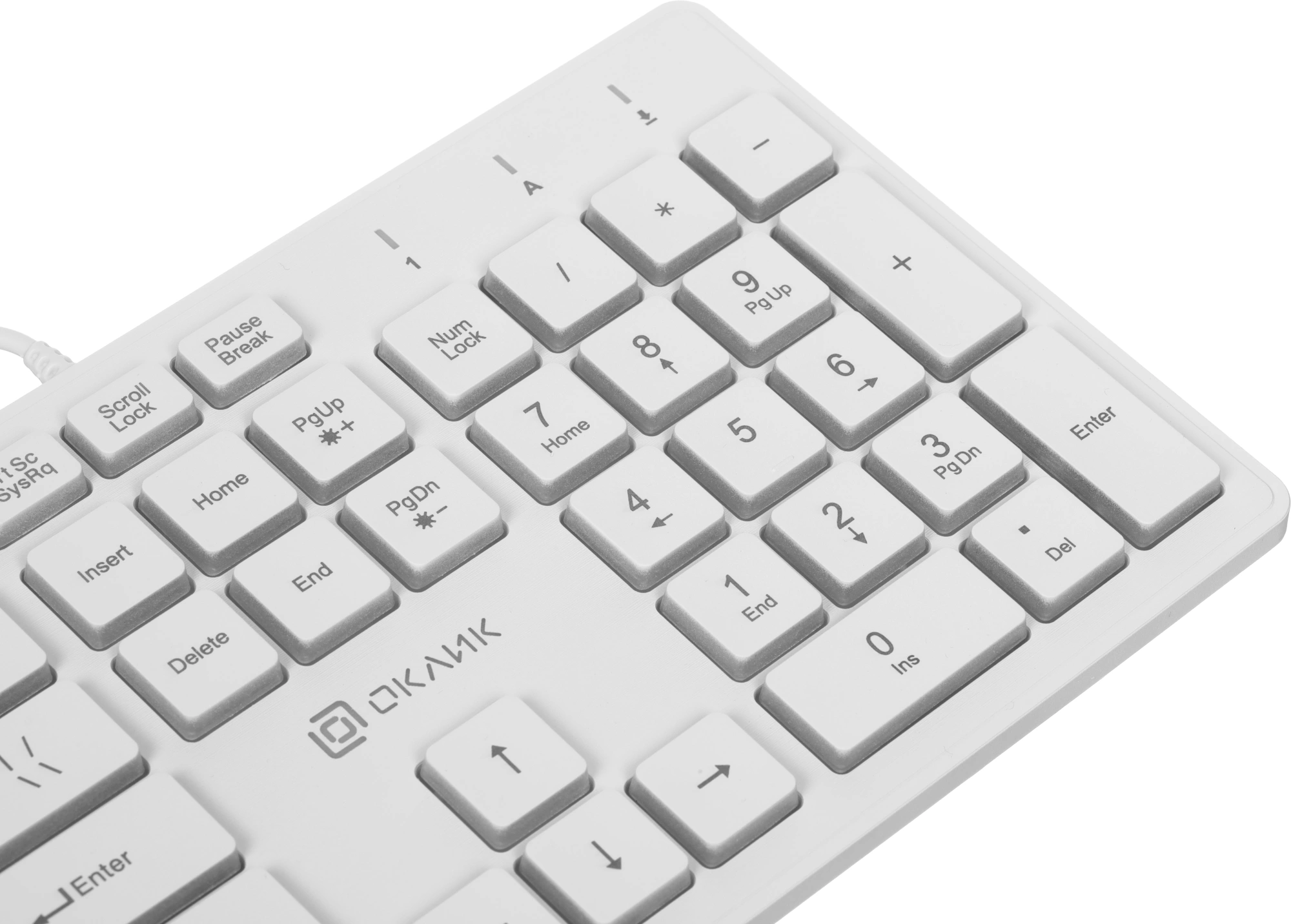 Oklick 550ML сделана в стильном slim-дизайне, за счёт компактных размеров которого клавиатура не занимает много места на рабочем столе.