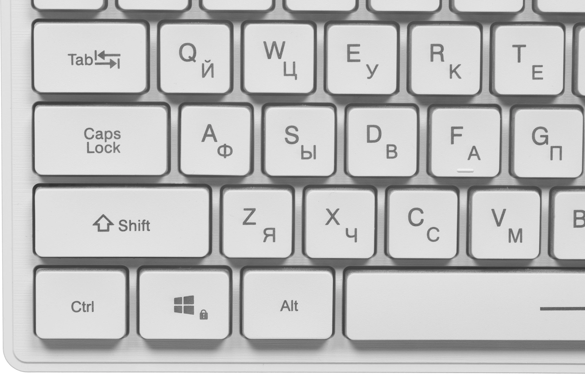 Модель доступна в белом цвете. Буквы английского и русского алфавита выделены серым.