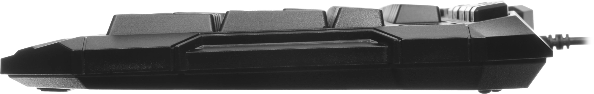 Девайс оборудован 114 клавишами, из них 10 – вынесены в отдельный блок и предназначены для выполнения разных мультимедийных команд. Дополнительная комбинация Fn+WIN блокирует клавишу Windows, чтобы предотвратить случайные вылеты из игровых сессий. Устройство имеет долгий срок службы: выдержит до 10 млн нажатий. Есть поддержка технологии Anti-Ghosting с одновременным нажатием до 26 клавиш. Влагозащитный корпус клавиатуры с дренажными отверстиями не боится попадания жидкости.