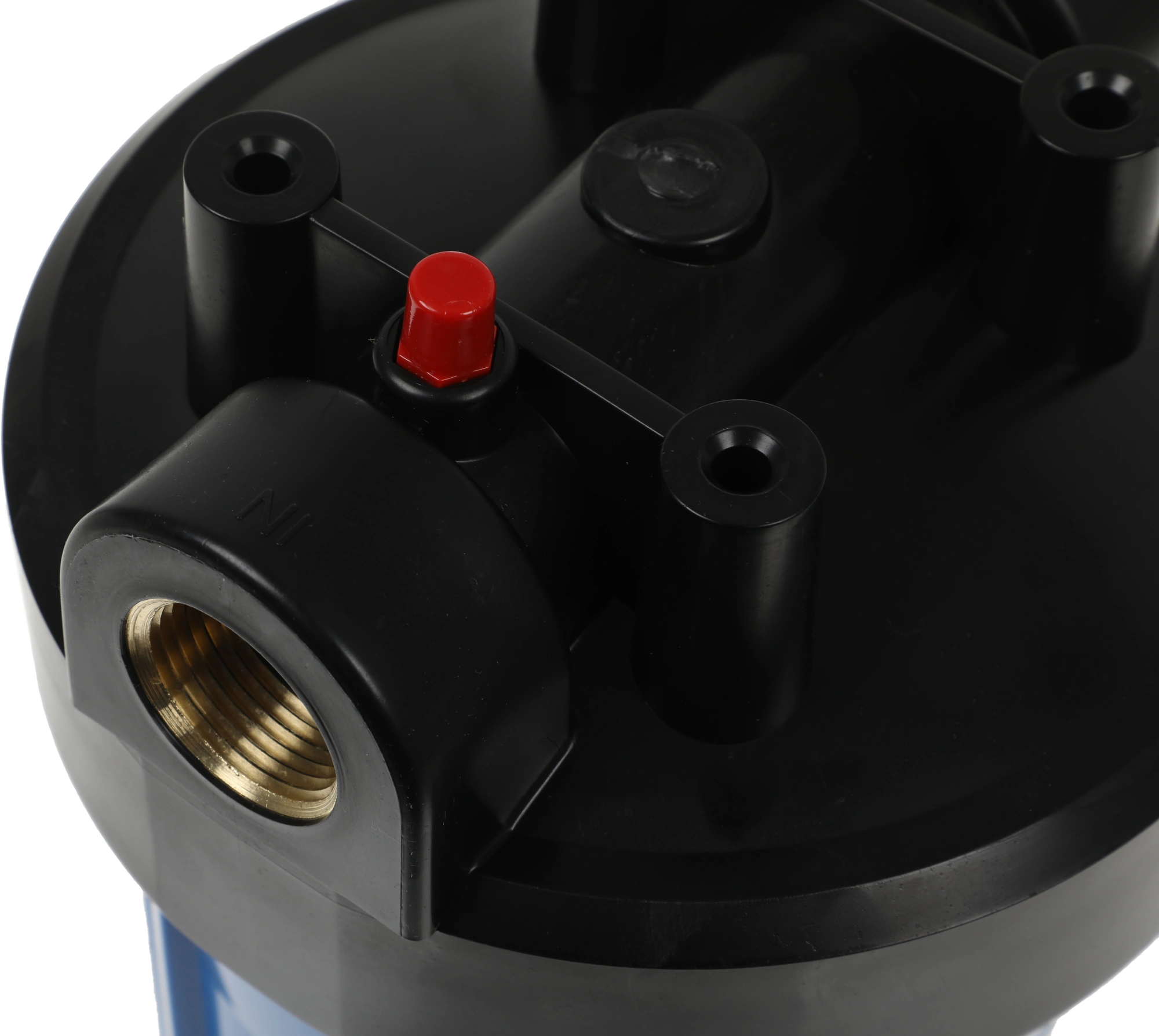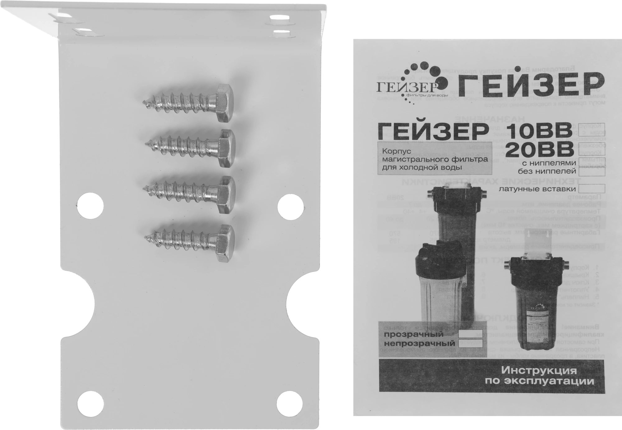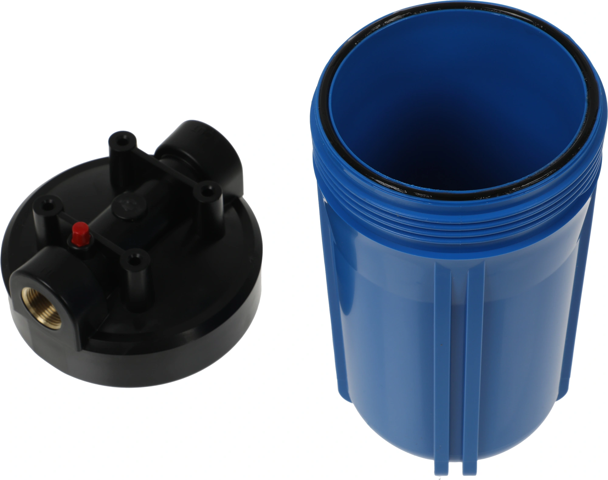 Корпус Гейзер 10BB изготовлен из синего полипропилена; крышка корпуса – черный полипропилен. Корпус рассчитан на работу под давлением и установку на входе в систему холодного водоснабжения. В производстве корпусов используется только первичное сырье пищевого класса.