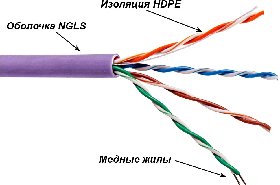 Кабель информационный Lanmaster TWT-5EUTP-NGLS кат.5E UTP 4 пары 24AWG PVC внутренний 305м фиолетовый