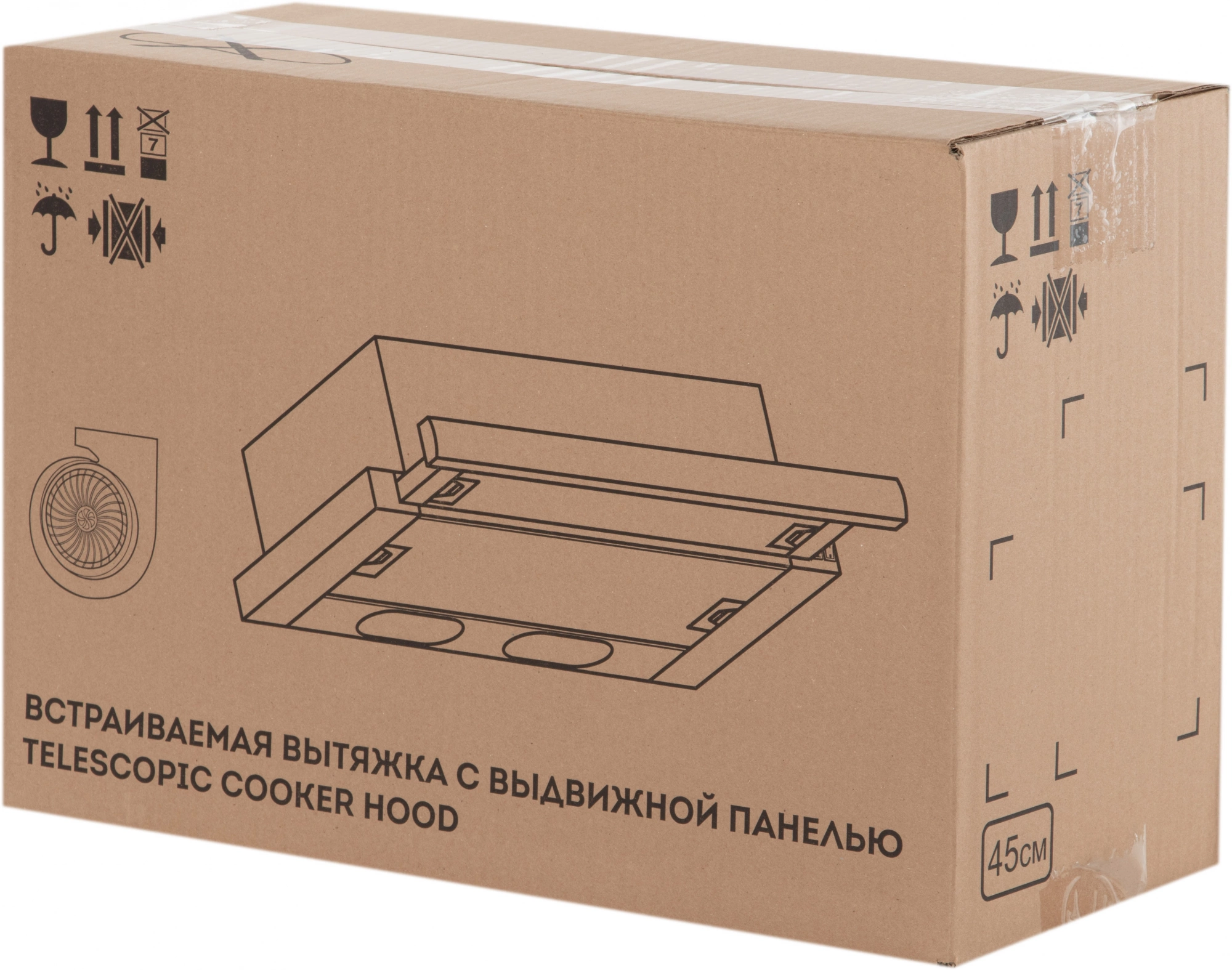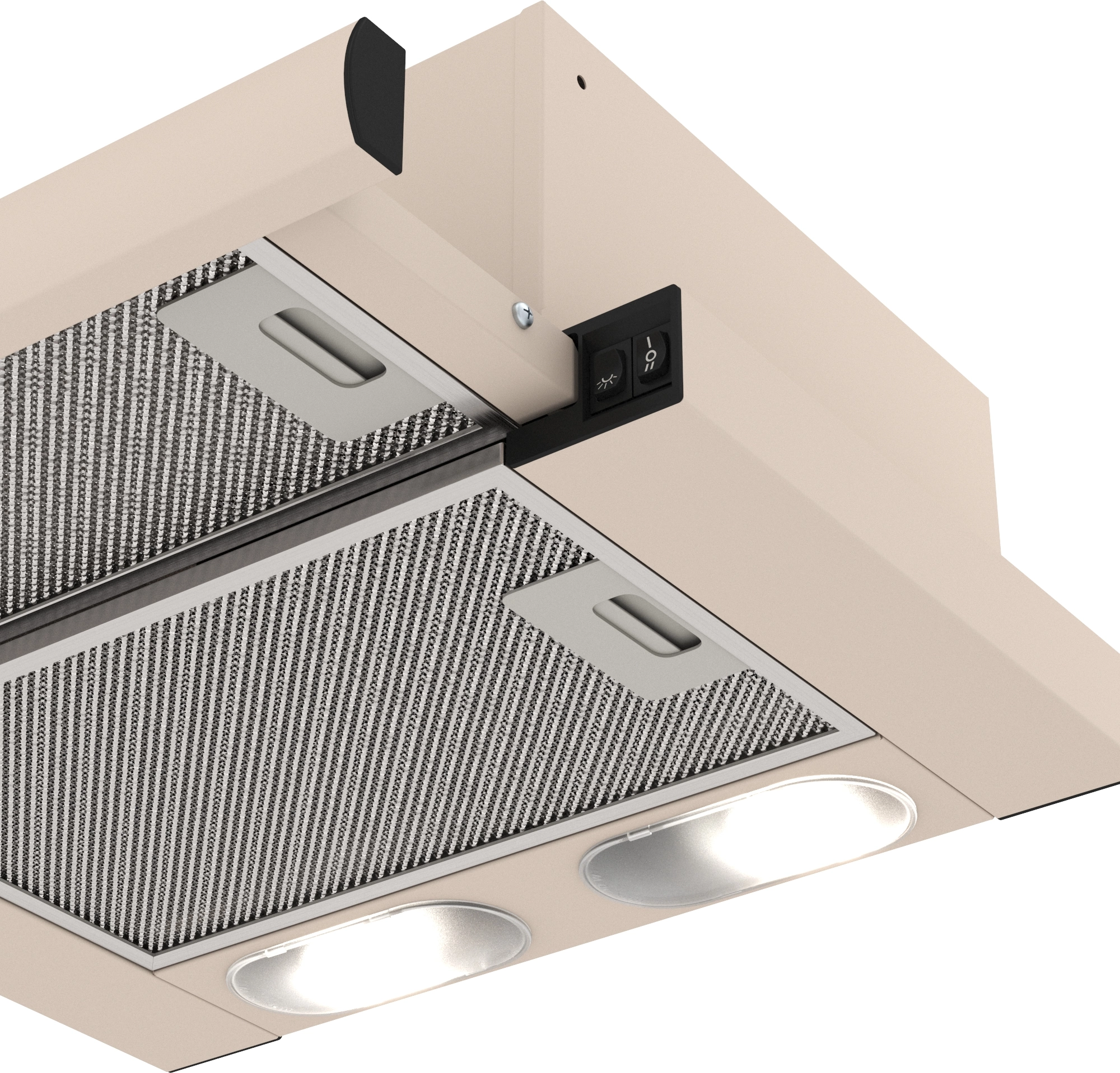 Выдвижная панель вытяжки «ИНТЕГРА» позволяет значительно увеличить зону всасывания над рабочей поверхностью, тем самым, повышая эффективность удаления загрязнённого воздуха.