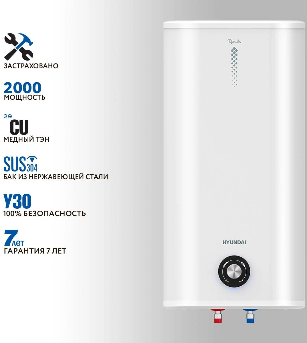 Система двухцветной индикации панели управления ROUND LIGHTS позволяет визуально контролировать работу водонагревателя и определять текущий режим работы. Абсолютная безопасность эксплуатации: защита от протечек, сухого нагрева и избыточного давления и поражения электрическим током.