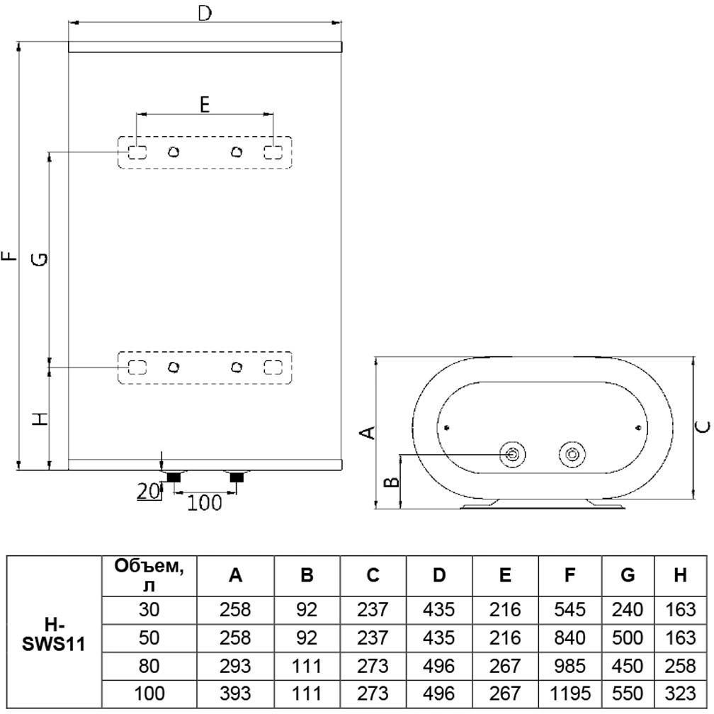 Объем емкости для воды
