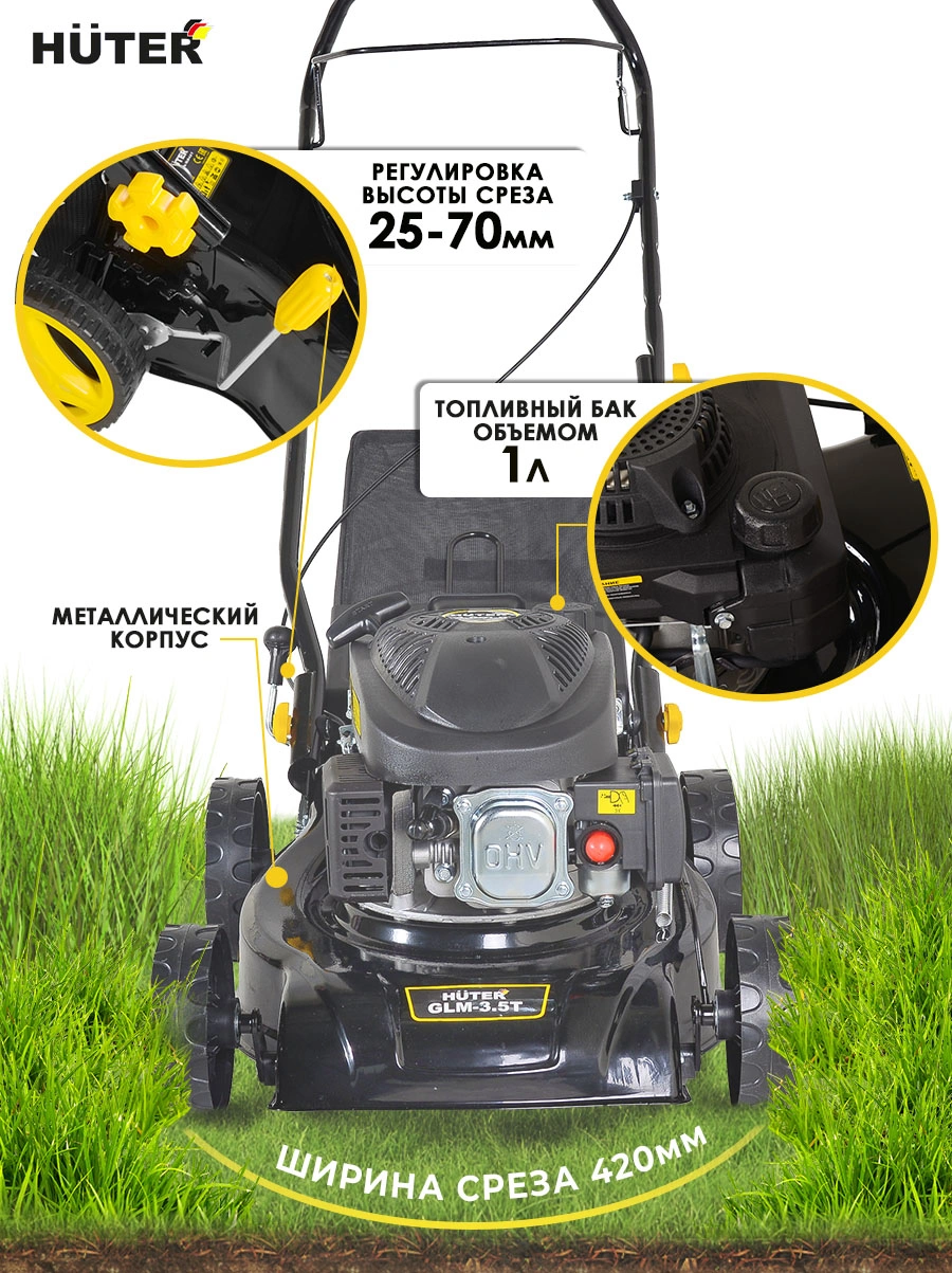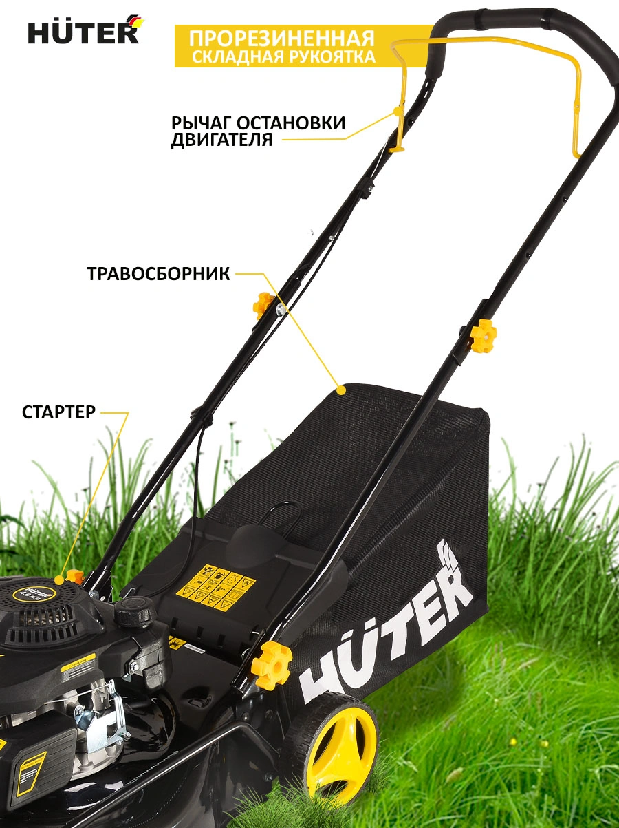 регулировка высоты скашивания, регулировка ручки по высоте, складная ручка