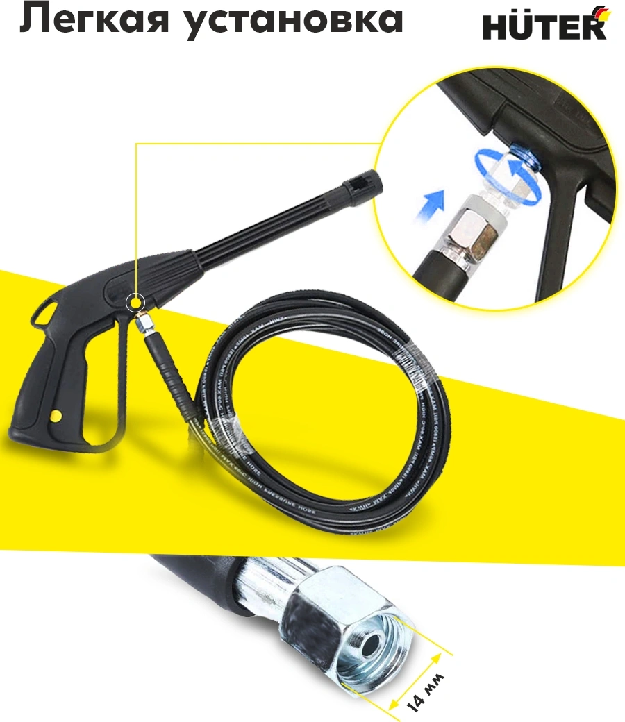 Шланг высокого давления Huter предназначен для подачи воды к бытовым мойкам высокого давления Huter. Максимальное давление: 44 МПа. Максимальная температура воды: + 50 C.