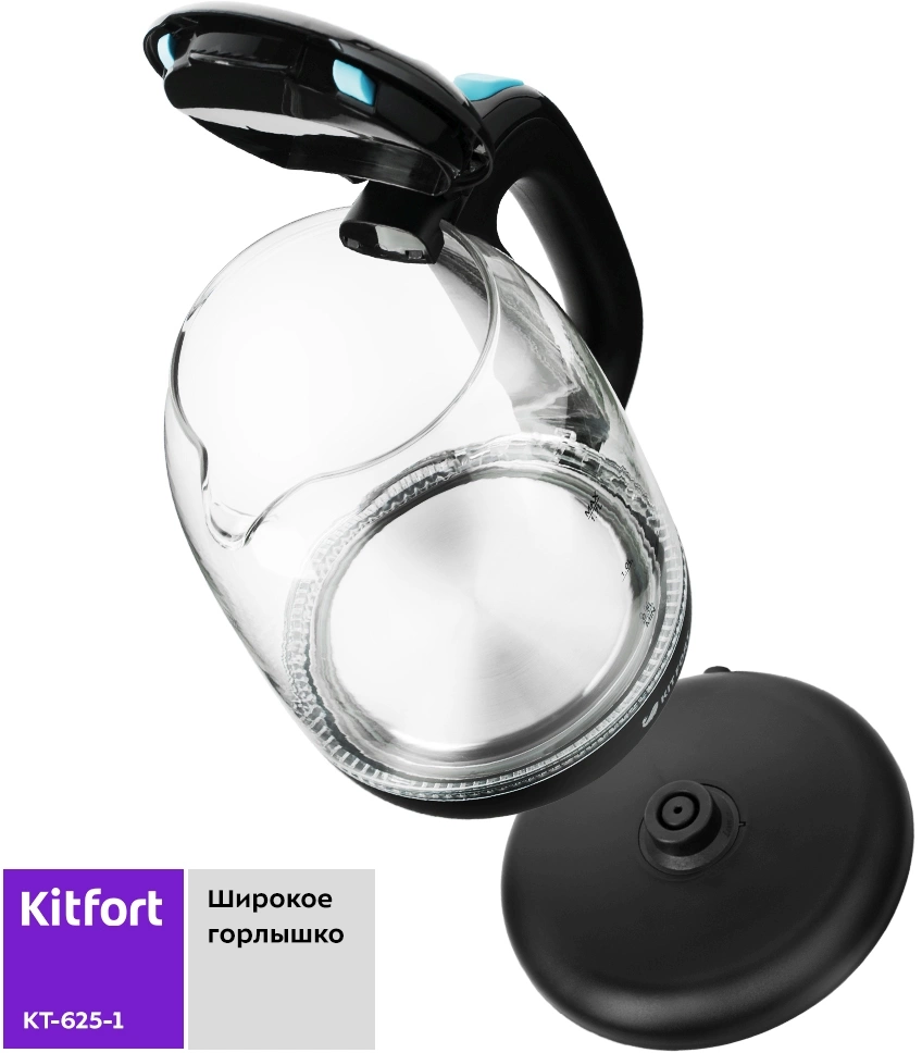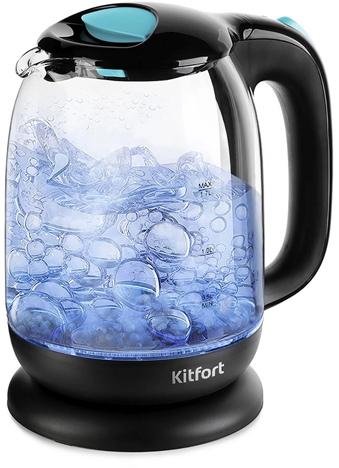1.7л. 2200Вт черный/голубой корпус: стекло/пластик