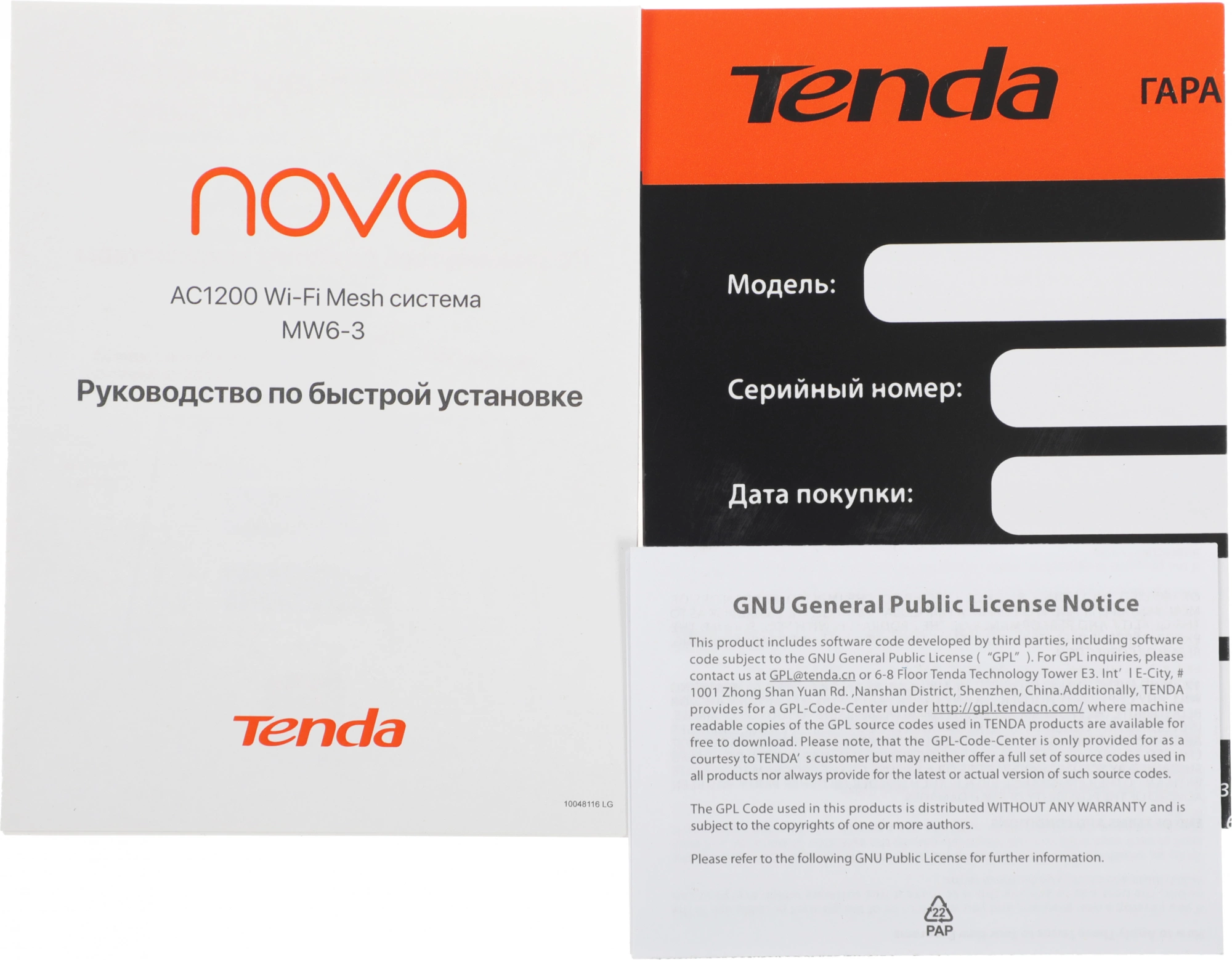 Mesh система - 3 шт., адаптер питания - 3 шт., Ethernet кабель, документация