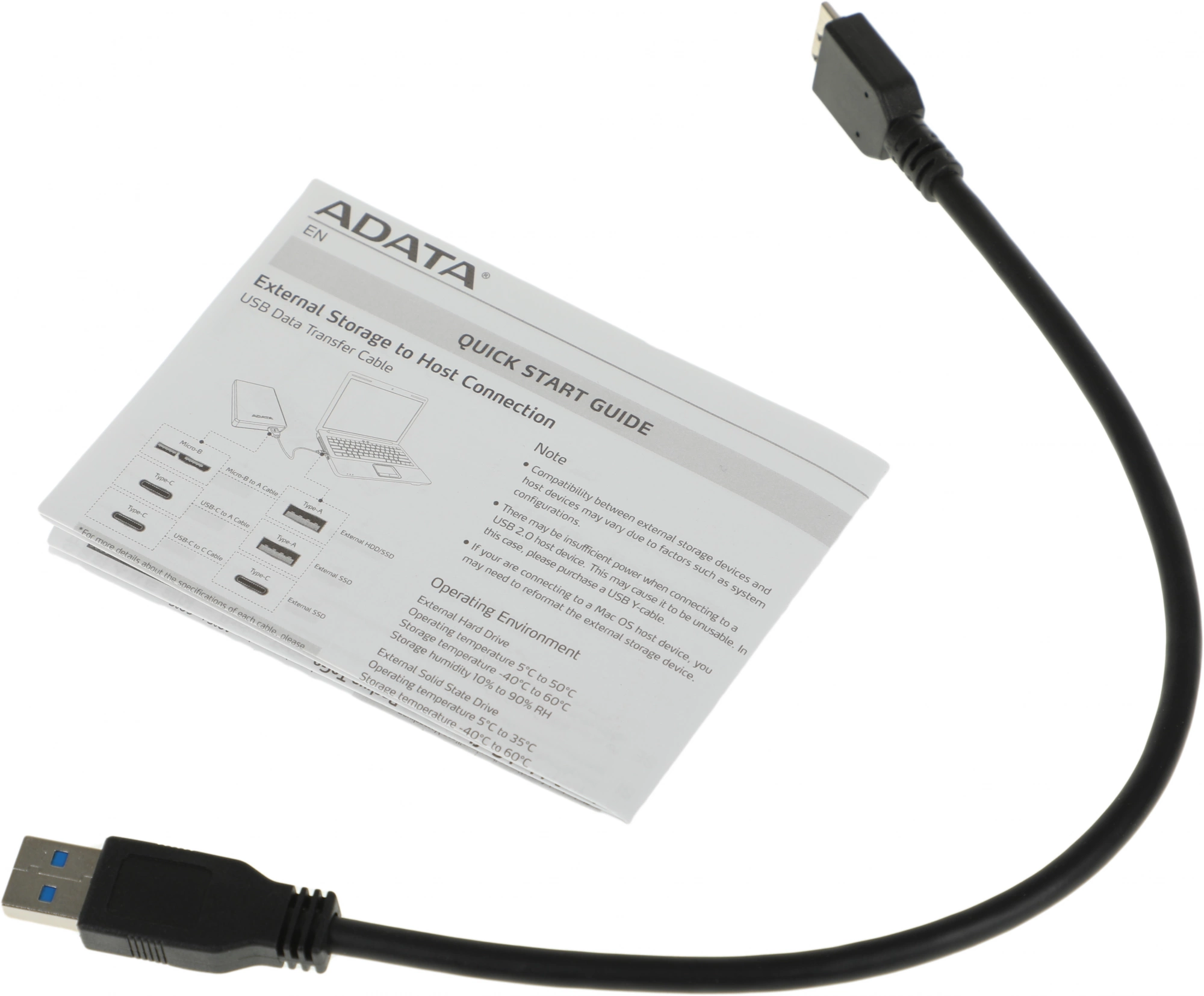 внешний диск, кабель USB, силиконовый чехол, инструкция