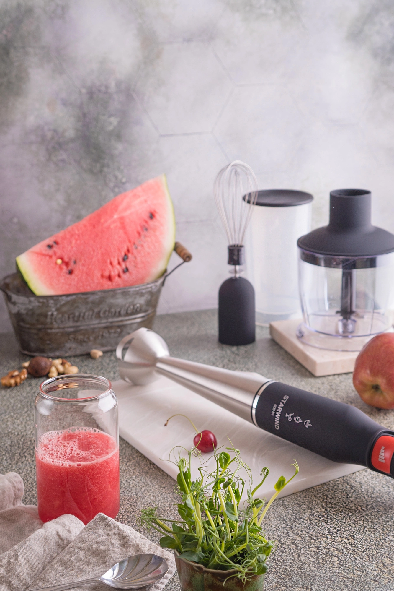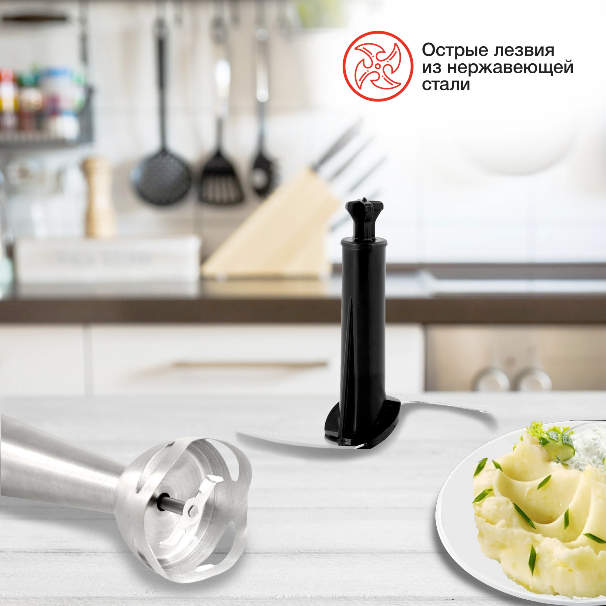 Все погружные элементы выполнены из качественной нержавеющей стали, что исключает появление ржавчины и коррозии и обеспечивает долгий срок службы. Блендер легко разбирается. Все элементы, которые контактируют с пищей можно очищать в посудомоечной машине.