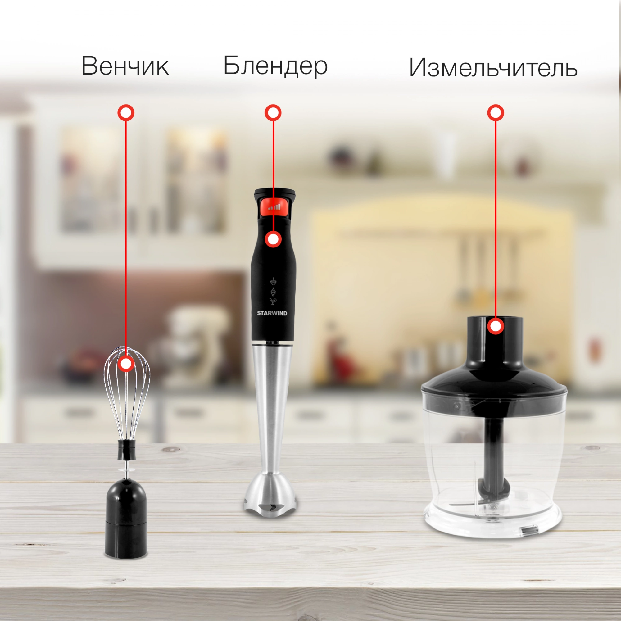 Стильный погружной блендер Starwind SBS3432b станет изюминкой на вашей кухне. Этот элегантный и изящный прибор поможет приготовить множество вкусных и полезных блюд. Благодаря высокой мощности процесс измельчения займет не больше одной минуты.