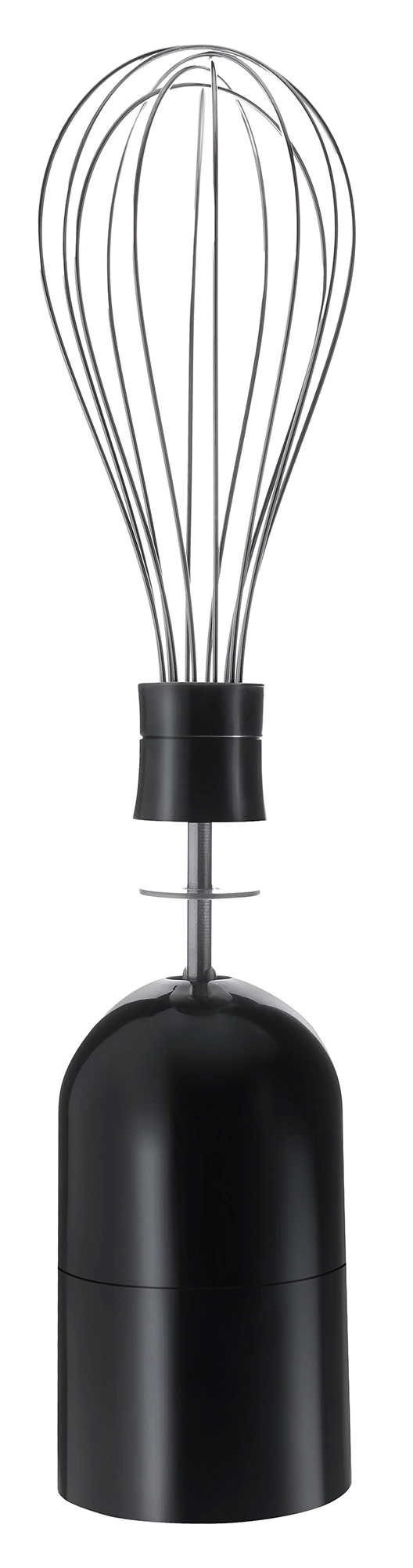 Острые ножи прикрывает защитный купол, который полностью предотвращает разбрызгивание жидких продуктов. Входящий в комплект венчик позволит взбить яичные белки и сливки для всевозможных десертов и торта.