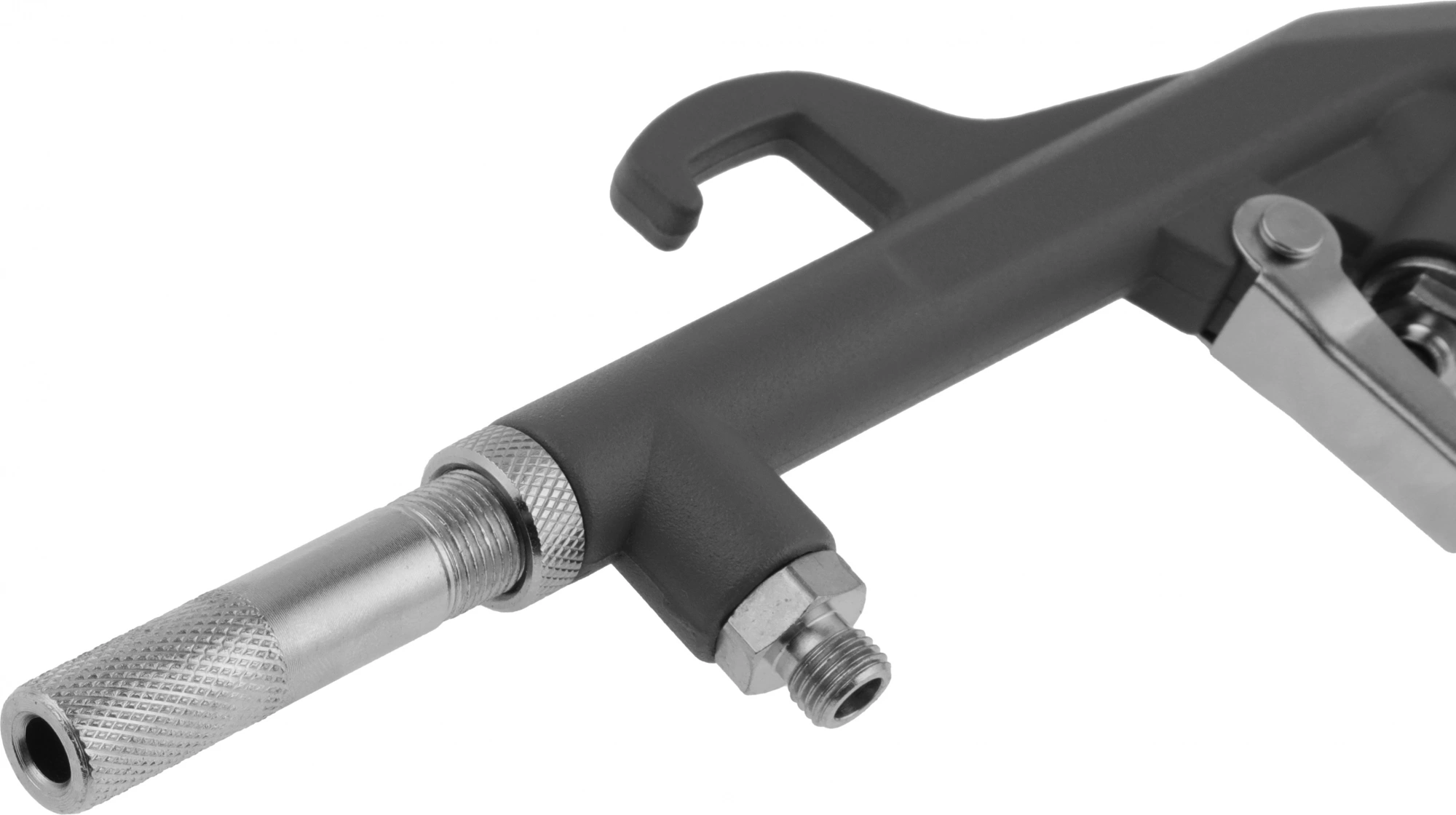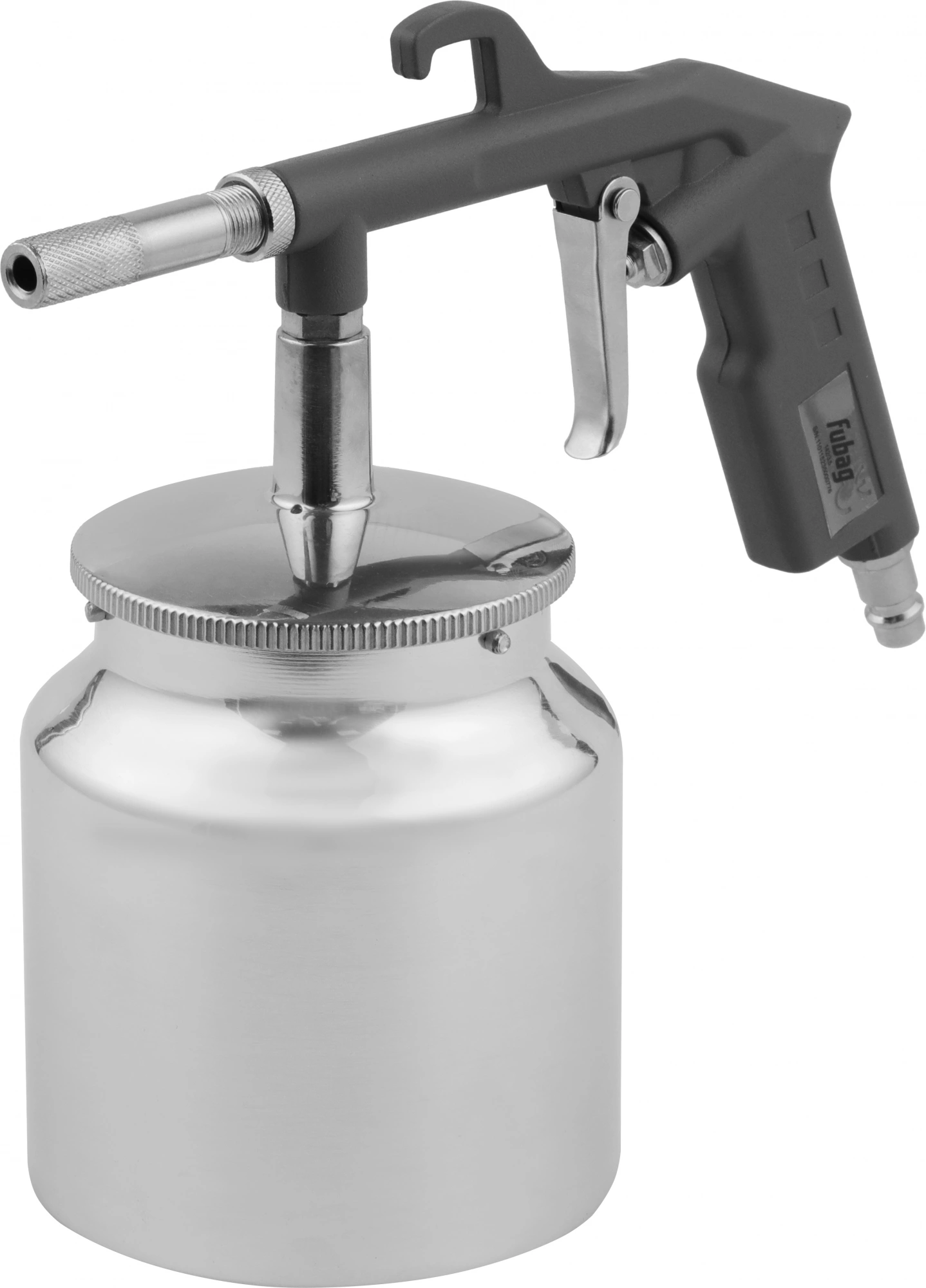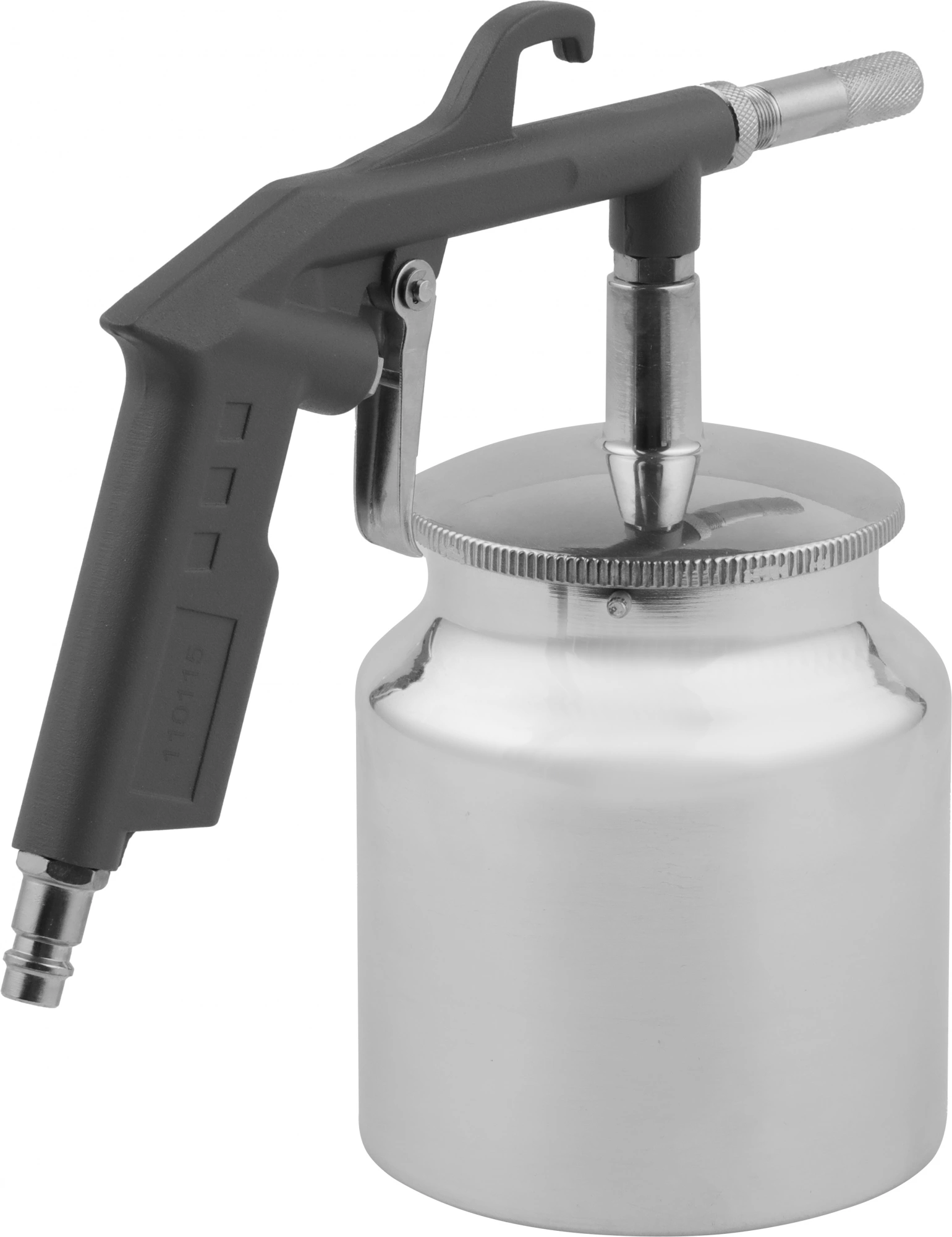 Пневмопистолет пескоструйный с бачком. Используется для шлифовки деревянных, металлических, каменных поверхностей и подготовке их к нанесению лакокра сочных материалов. Продув совершается выходящим под давлением воздухом с абразивным веществом, которое подается через специальный шланг из бачка.