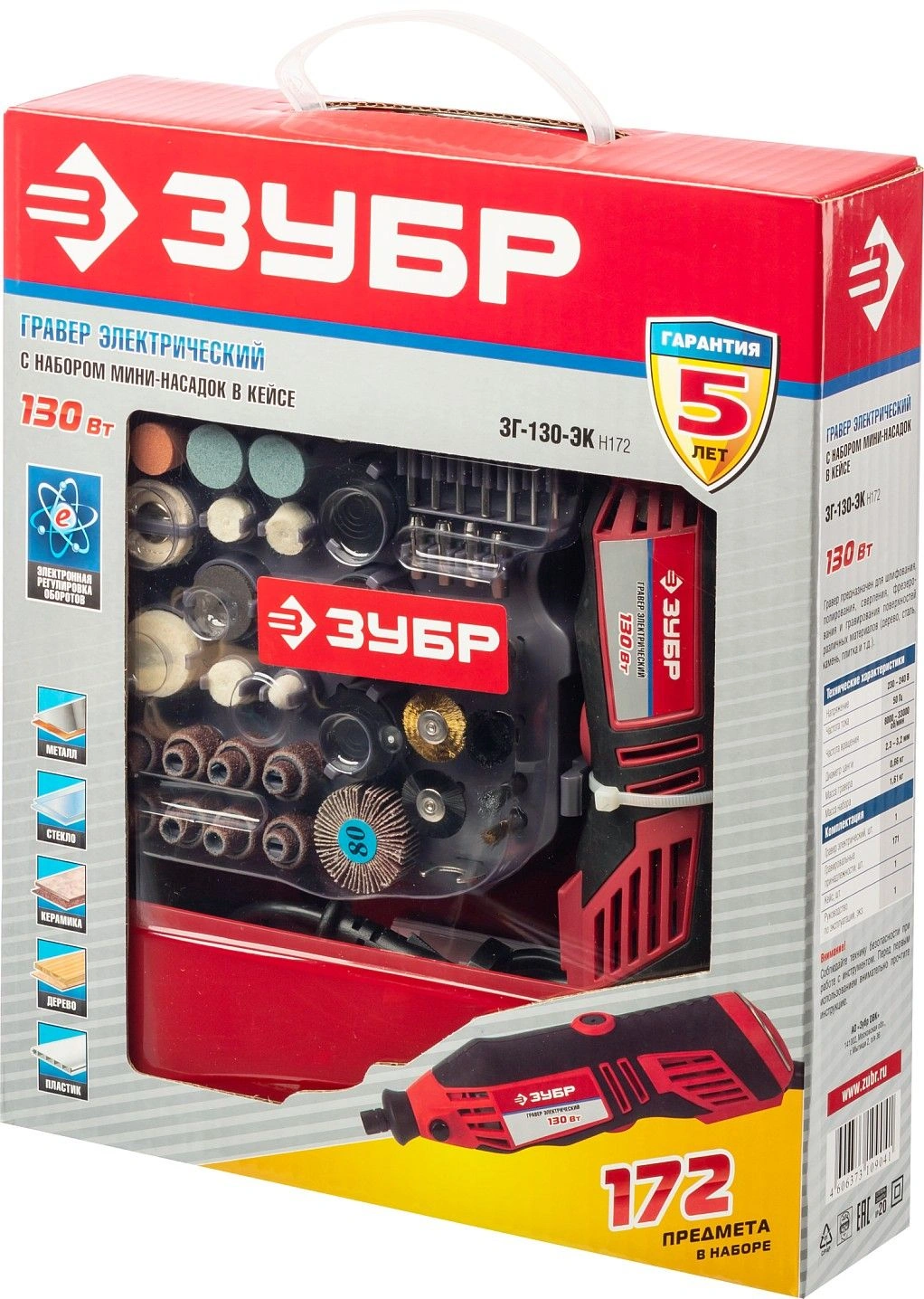 Гарантийный срок составляет 36 месяцев со дня продажи. Расширенная гарантия 60 мес. предоставляется только при условии, если владелец зарегистрирует инструмент в течение 4 недель с момента покупки на сайте компании ЗУБР. Внешний вид и цвет товара может отличаться от представленого на фото.