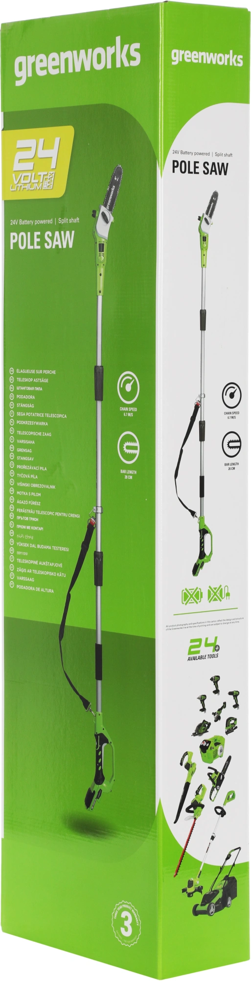 3-коленная составная штанга для работы на разных высотах. Автоматическая подача масла и смазка цепи.