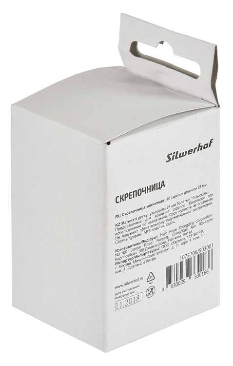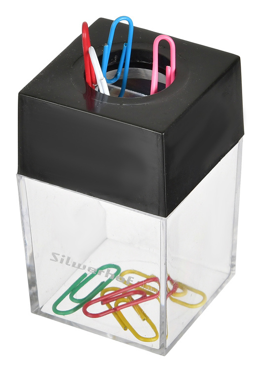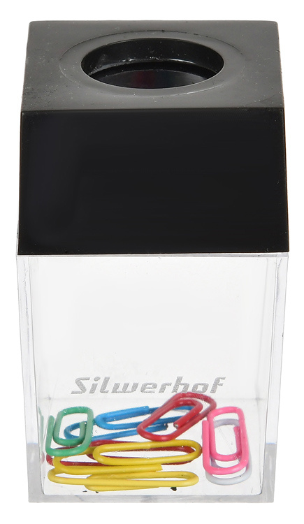 Скрепочница Silwerhof 503001 магнитная с наполнением прозрачный картонная коробка