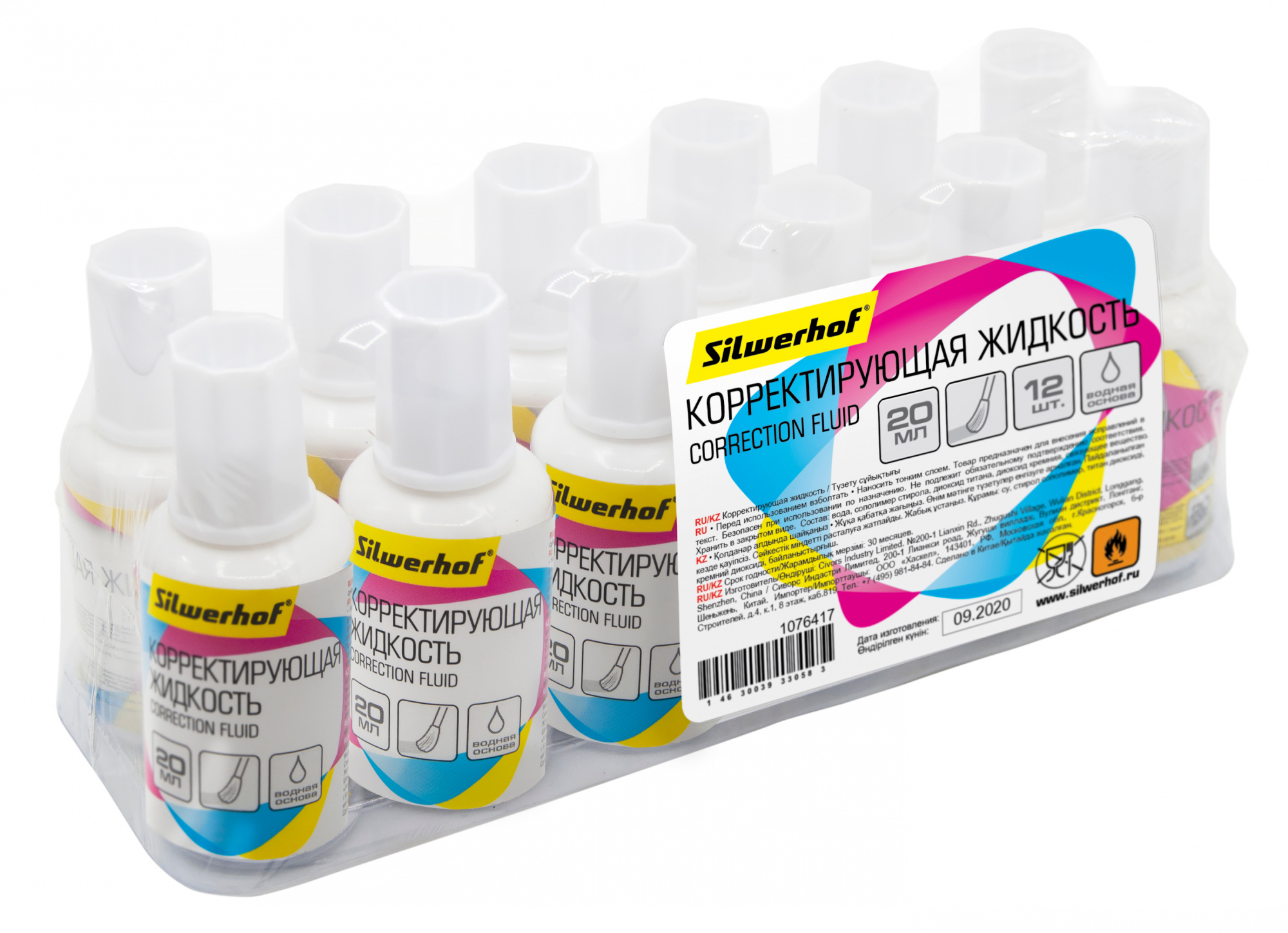 Жидкость коррект. Silwerhof 443030 на водной основе кисточка белый 20мл