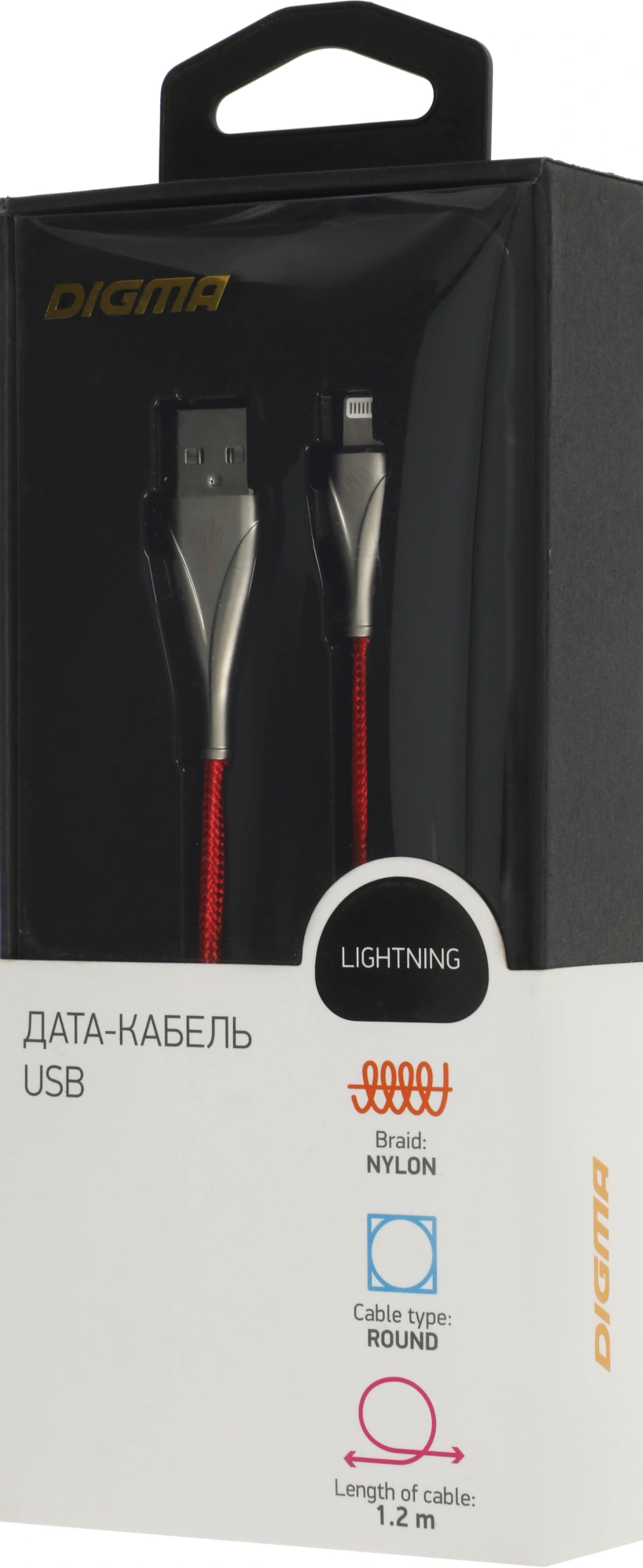 Кабель Digma LIGHT-1.2M-RED USB (m)-Lightning (m) 1.2м красный