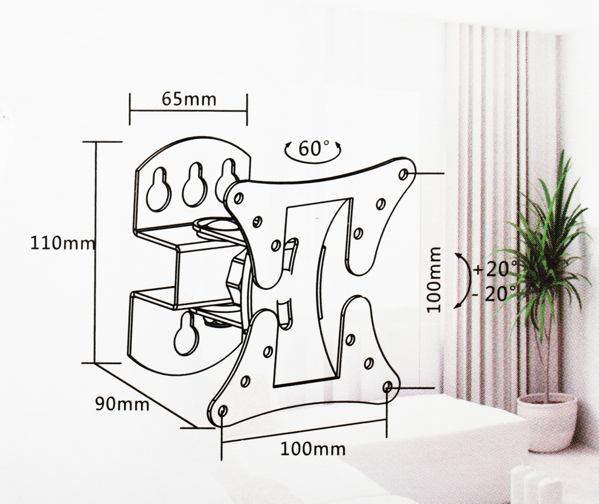 черный 12"-27" макс.30кг настенный поворот и накло...