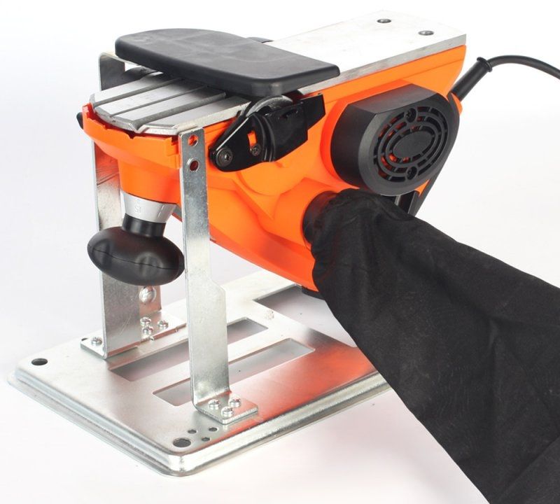 Станина для стационарной работы. Прорезиненная рукоятка ExtraGrip. Система ножей SharpCut для легкого строгания и быстрой замены. Эффективная система выброса стружки. Блокировка случайного включения. Прорезиненный морозостойкий кабель.