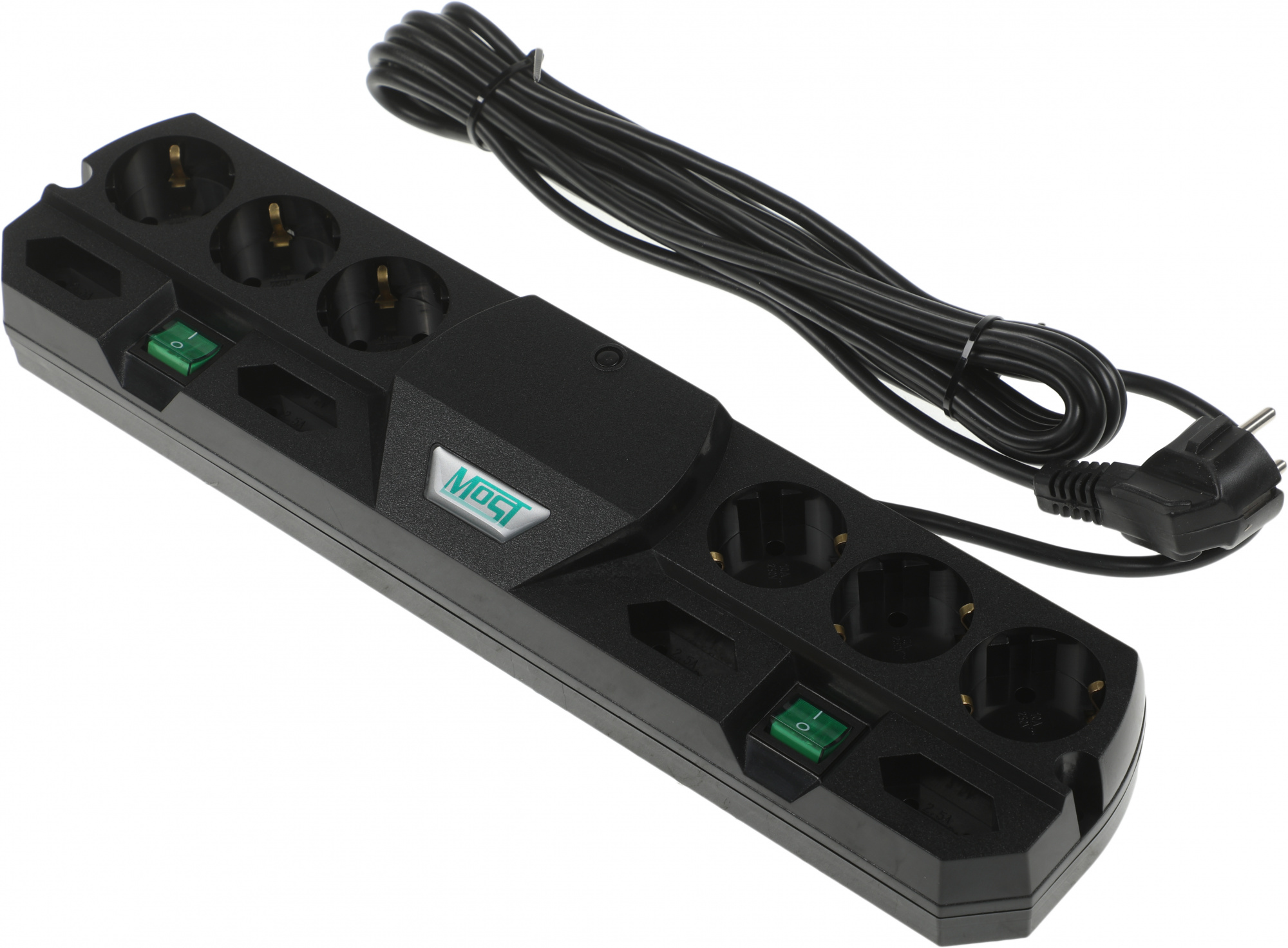 2 сетевых фильтра в одном корпусе. Возможность подключить до 10 различных устройст одновременно. Возможность раздельного питания 2-х групп аппаратуры/двух рабочих мест рядом. 6 евророзеток с заземлением и 4 узкие розетки без заземления. Рекомендуется для сетей с относительно стабильным напряжением.