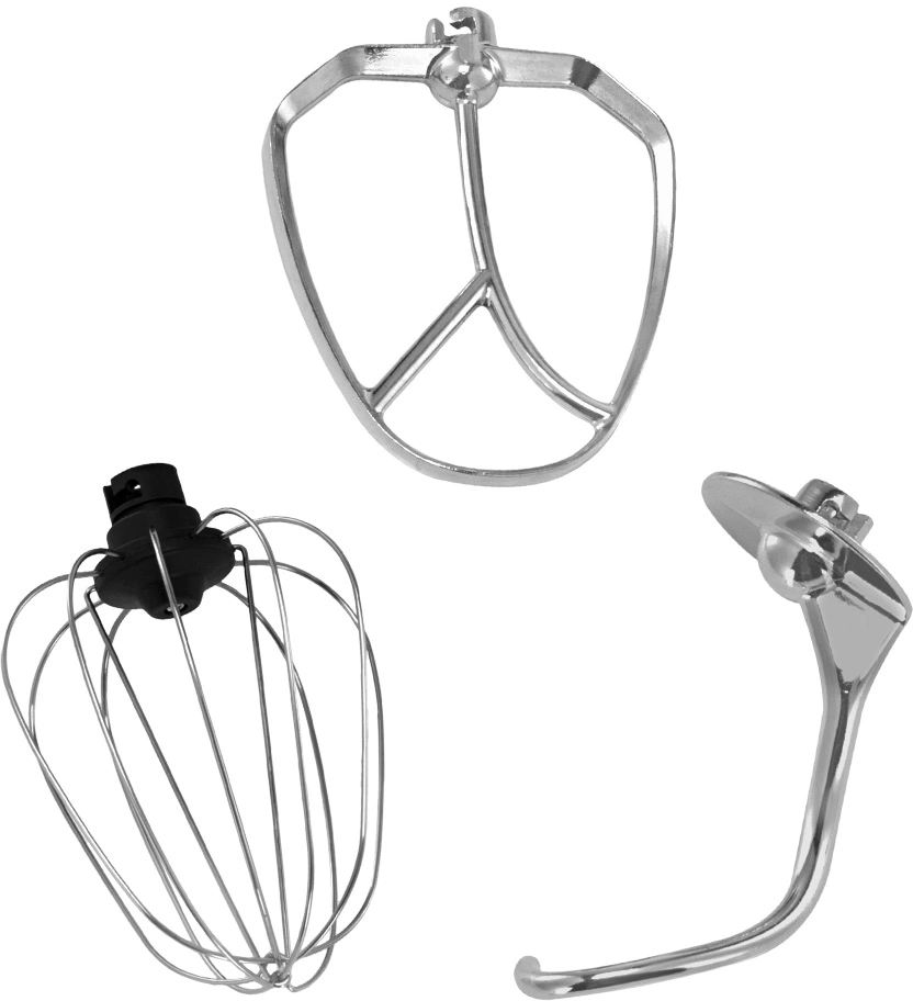 Миксер: чаша, крышка чаши, венчик для взбивания, насадка для смешивания, крюк для замеса теста. Блендер: чаша, крышка, мерный колпачок. Инструкция