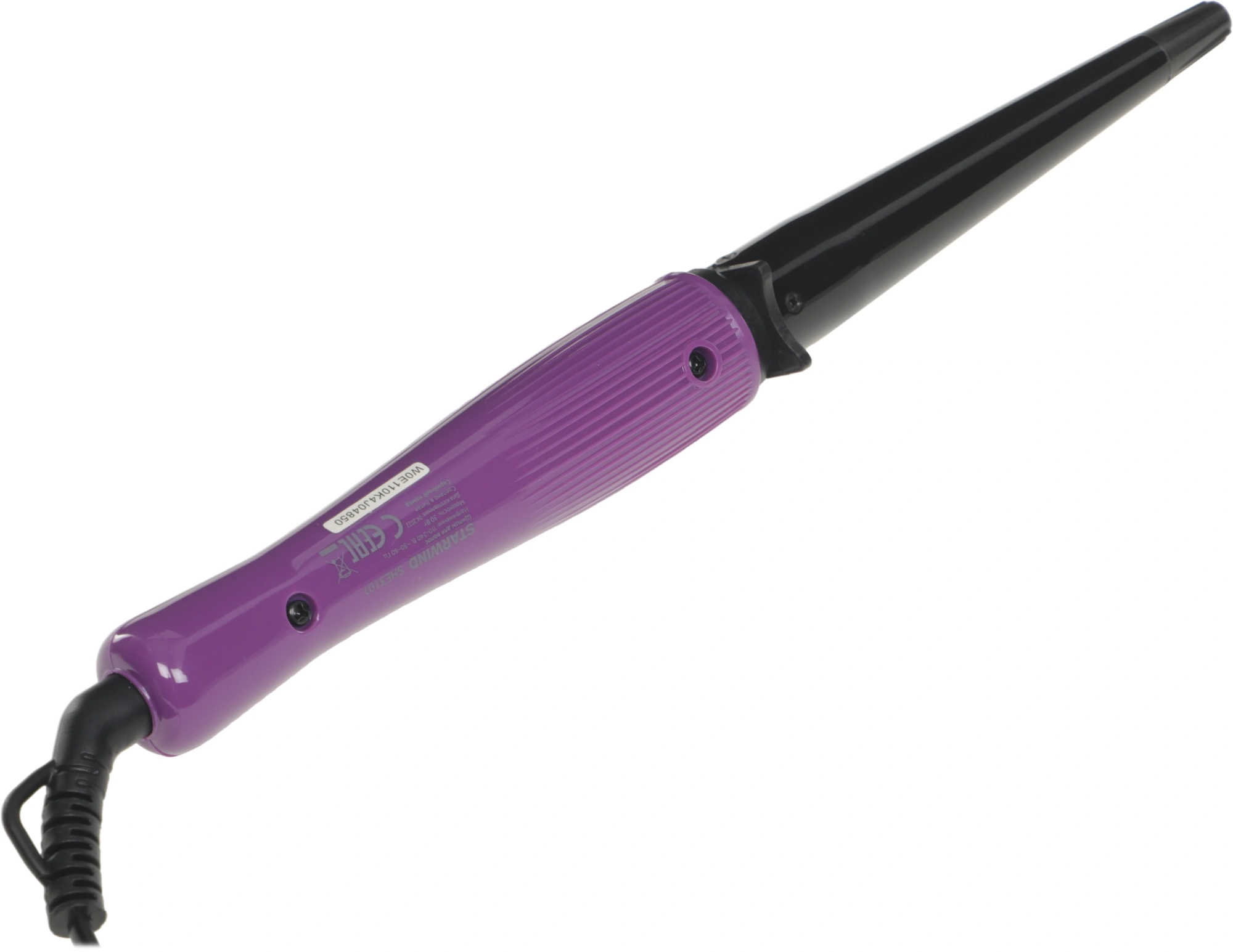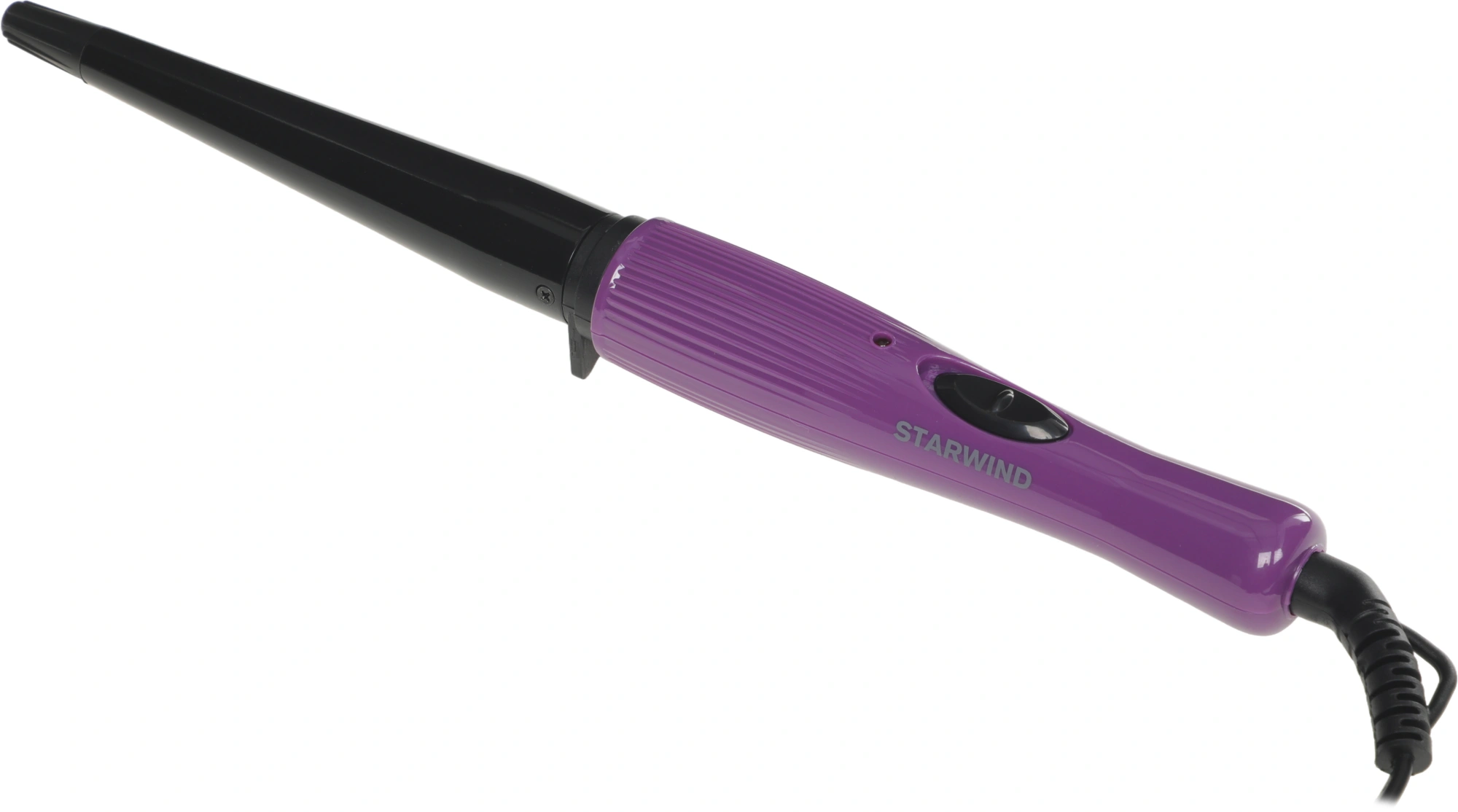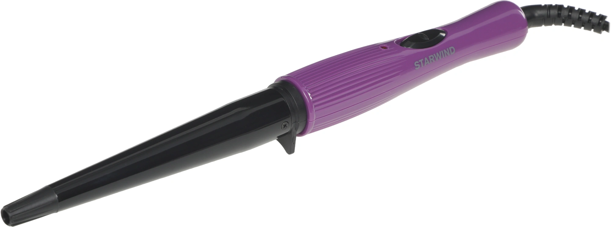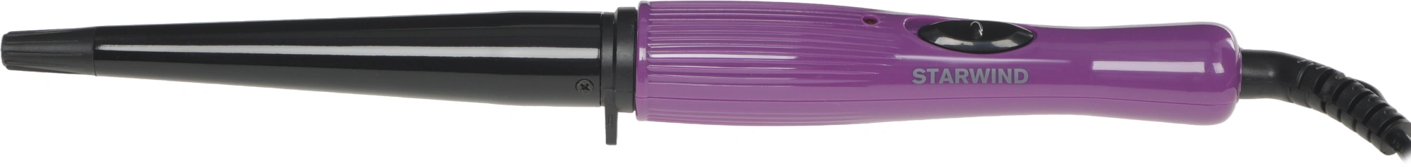 Рабочая поверхность щипцов STARWIND SHE3101 имеет коническую форму. Именно это дает возможность создать изящные локоны, с постепенным переходом от более крупного диаметра (у корней) к мелкому. Максимальная температура нагревания устройства - 200 градусов. Этого показателя достаточно для того, чтобы превратить даже самые непослушные и жесткие волосы в стильную прическу. Благодаря достаточно мощному нагревательному элементу, стайлер после включения будет готов к работе уже через 30 секунд и также быстро превратит подготовленную прядь в шикарный завиток. Диаметр конуса в верхней части 19 мм, а в нижней - 13 мм.